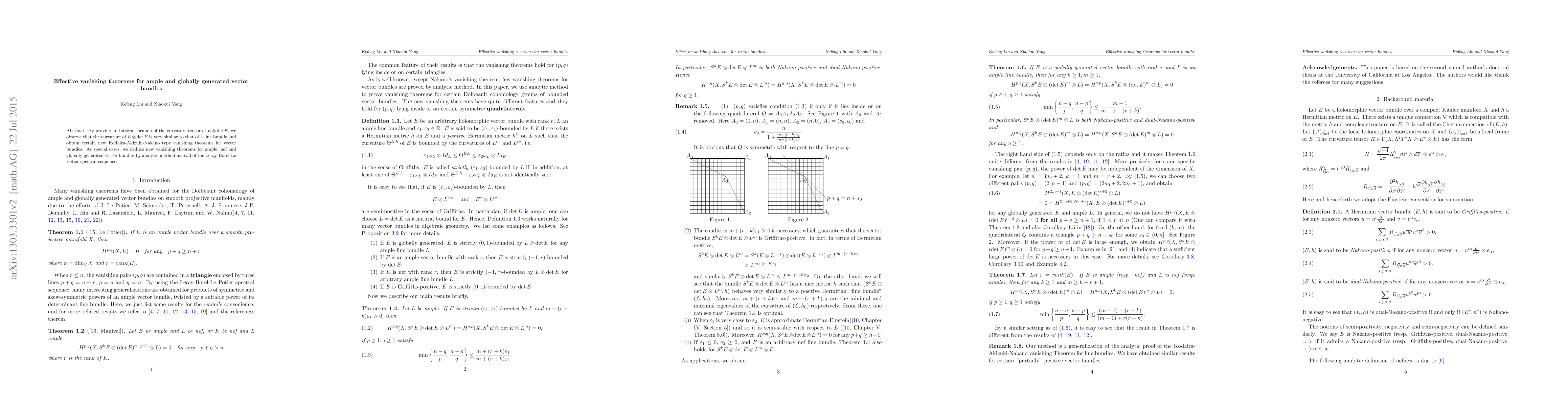 The paper establishes new Kodaira-Akizuki-Nakano vanishing theorems for ample, nef, and globally generated vector bundles using an integral formula for the curvature tensor of $E \otimes \det E$, derived via an analytic method rather than spectral sequences. This provides an alternative approach to known results.