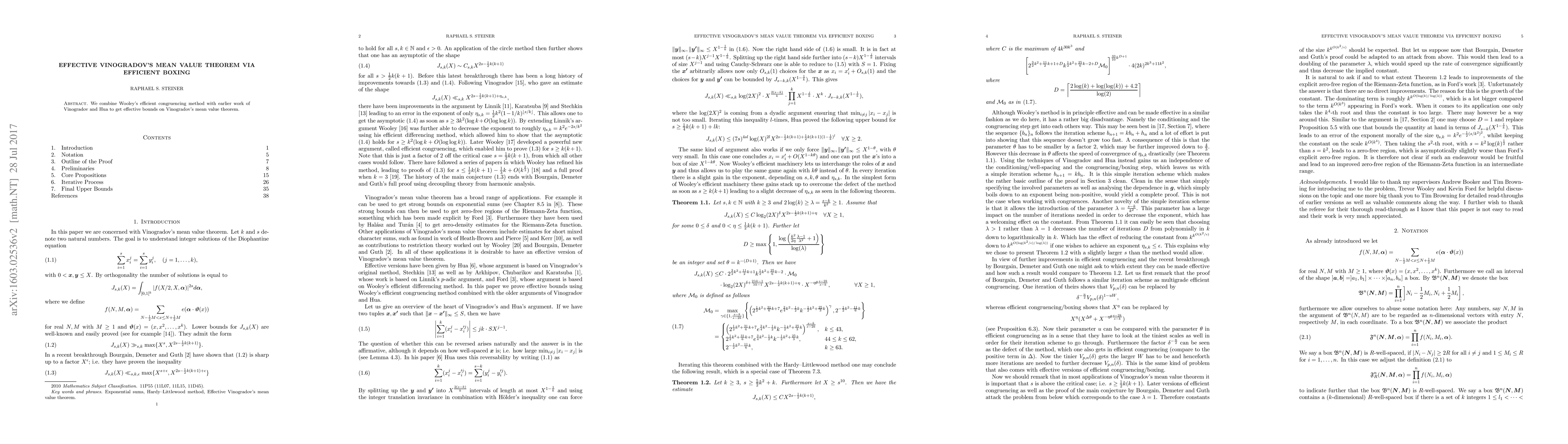 Summary: This paper combines Wooley's efficient congruencing method with Vinogradov and Hua's earlier work to achieve effective bounds on Vinogradov's mean value theorem, enhancing its applicability in analytic number theory.