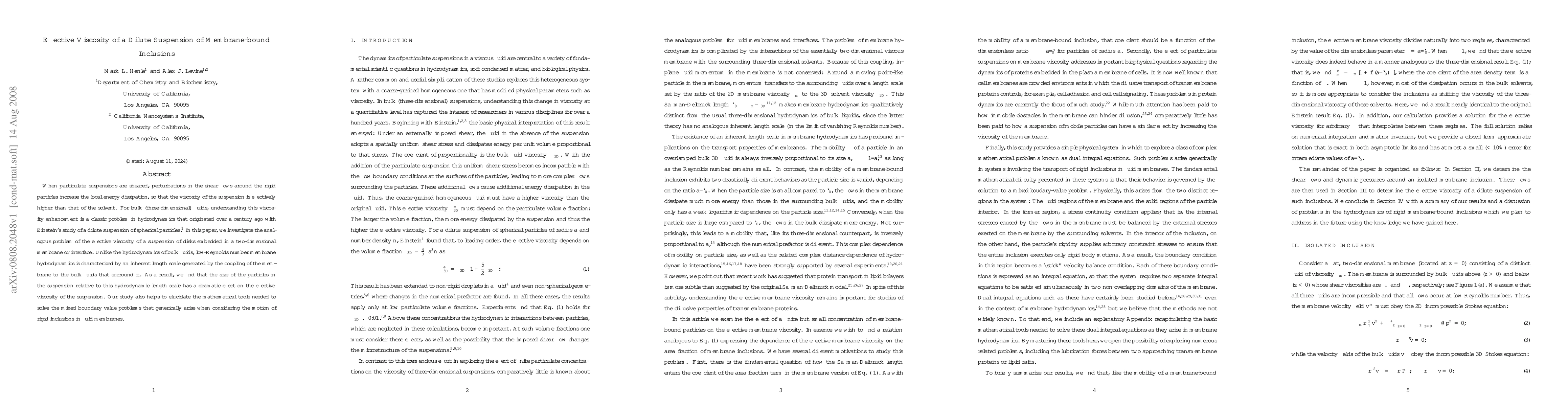 This paper investigates the effective viscosity of a dilute suspension of membrane-bound disks, revealing that particle size relative to the hydrodynamic length scale significantly impacts viscosity. It extends classical hydrodynamics to membrane systems and provides mathematical tools for solving boundary value problems in such contexts.