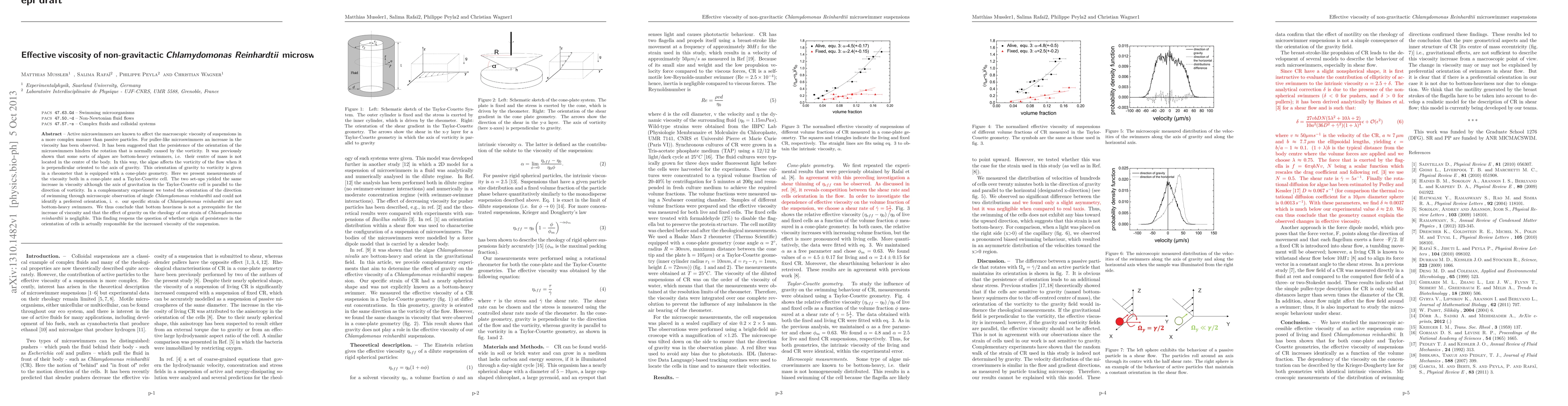 Active microswimmers are known to affect the macroscopic viscosity of suspensions in a more complex manner than passive particles. For puller-like microswimmers an increase in the viscosity has been observed. It has been suggested that the persistence of the orientation of the microswimmers hinders the rotation that is normally caused by the vorticity. It was previously shown that some sorts of algaes are bottom-heavy swimmers, i.e. their centre of mass is not located in the centre of the body. In this way, the algae affects the vorticity of the flow when it is perpendicular oriented to the axis of gravity. This orientation of gravity to vorticity is given in a rheometer that is equipped with a cone-plate geometry. Here we present measurements of the viscosity both in a cone-plate and a Taylor-Couette cell. The two set-ups yielded the same increase in viscosity although the axis of gravitation in the Taylor-Couette cell is parallel to the direction of vorticity. In a complementary experiment we tested the orientation of the direction of swimming through microscopic observation of single \textit{Chlamydomonas reinhardtii} and could not identify a preferred orientation, i. e. our specific strain of \textit{Chlamydomonas reinhardtii} are not bottom-heavy swimmers. We thus conclude that bottom heaviness is not a prerequisite for the increase of viscosity and that the effect of gravity on the rheology of our strain of \textit{Chlamydomonas reinhardtii} is negligible. This finding reopens the question of whether origin of persistence in the orientation of cells is actually responsible for the increased viscosity of the suspension.