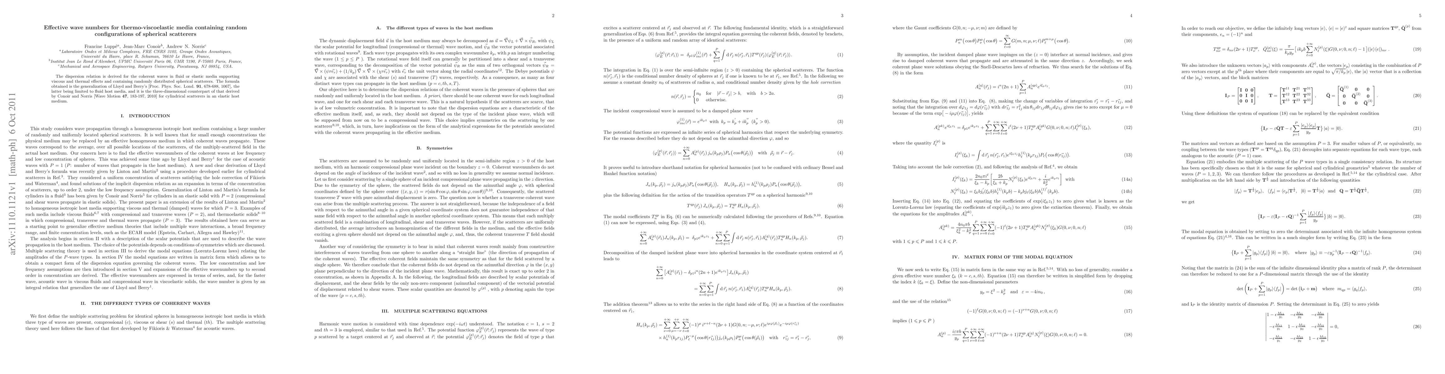 The dispersion relation is derived for the coherent waves in fluid or elastic media supporting viscous and thermal effects and containing randomly distributed spherical scatterers. The formula obtained is the generalization of Lloyd and Berry's [Proc. Phys. Soc. Lond. 91, 678-688, 1067], the latter being limited to fluid host media, and it is the three-dimensional counterpart of that derived by Conoir and Norris [Wave Motion 47, 183-197, 2010] for cylindrical scatterers in an elastic host medium.