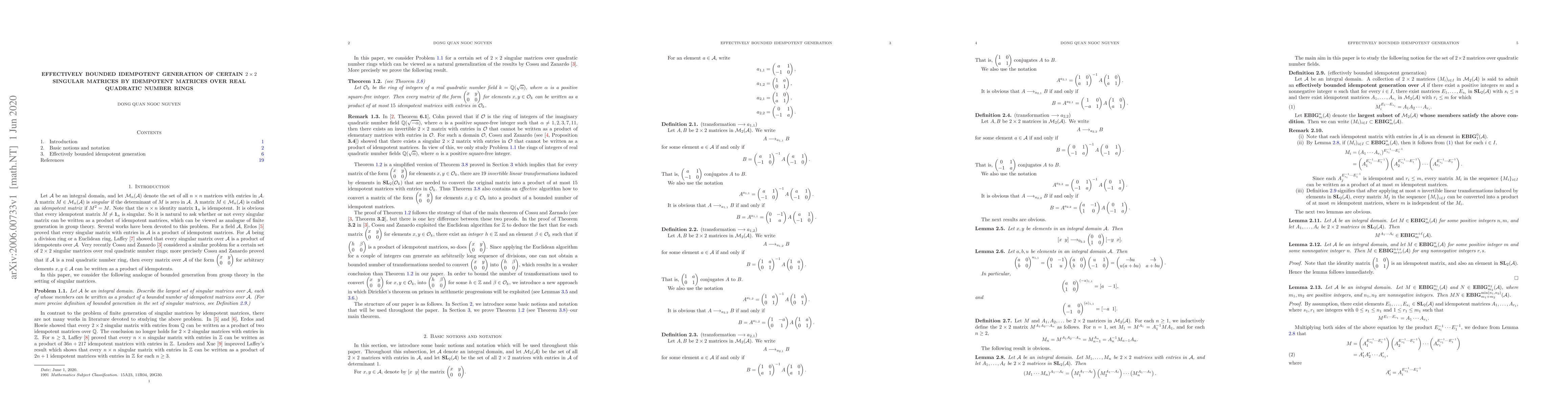 This paper proves that specific $2 \times 2$ singular matrices with entries in the ring of integers of a real quadratic number field can be expressed as a product of a bounded number of idempotent matrices. This generalizes a prior result by Cossu and Zanardo on the finite generation of such matrices.