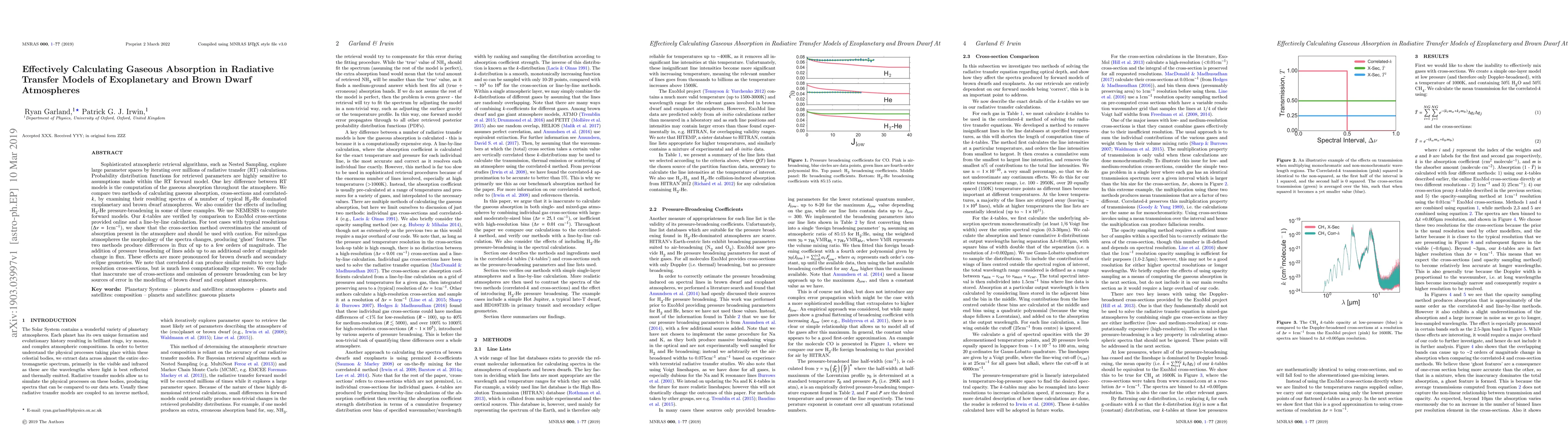 This paper compares two methods for calculating gaseous absorption in radiative transfer models for exoplanetary and brown dwarf atmospheres: cross-sections and correlated-$k$. It finds that cross-sections can overestimate absorption and produce erroneous spectral features, especially in mixed-gas atmospheres and for brown dwarfs. Correlated-$k$ is shown to be more computationally efficient while producing similar results at high resolution.