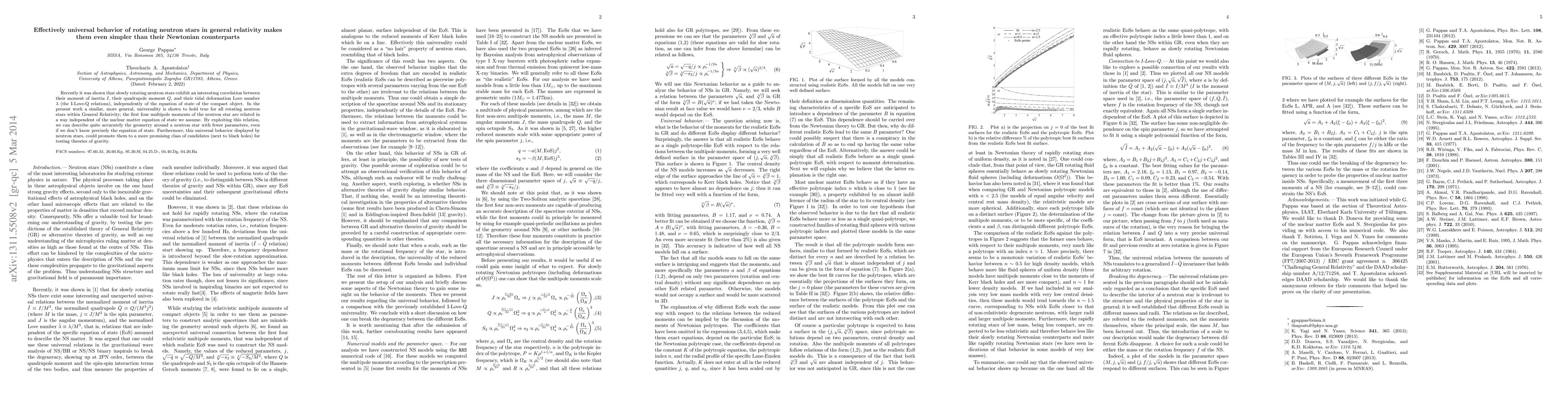 This paper demonstrates that rotating neutron stars in general relativity exhibit a universal behavior, where the first four multipole moments are interrelated independently of the equation of state. This simplifies the description of neutron star geometry and enhances their potential for testing gravitational theories.