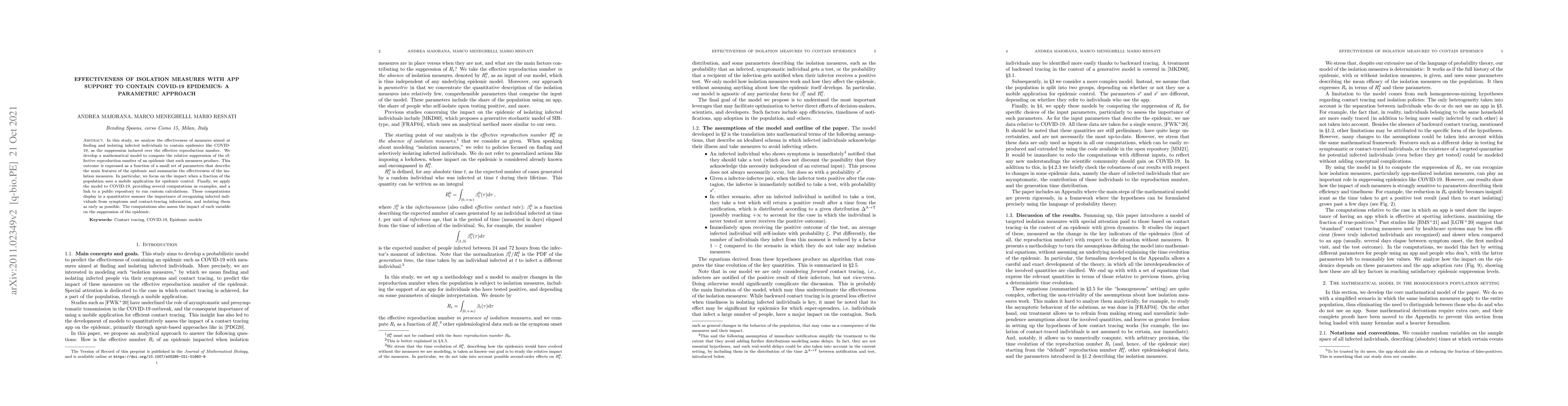 This study develops a mathematical model to assess the effectiveness of isolation measures, including app-supported contact tracing, in suppressing COVID-19 epidemics. The model quantifies the reduction in the effective reproduction number based on key parameters and demonstrates the importance of early identification and isolation of infected individuals.