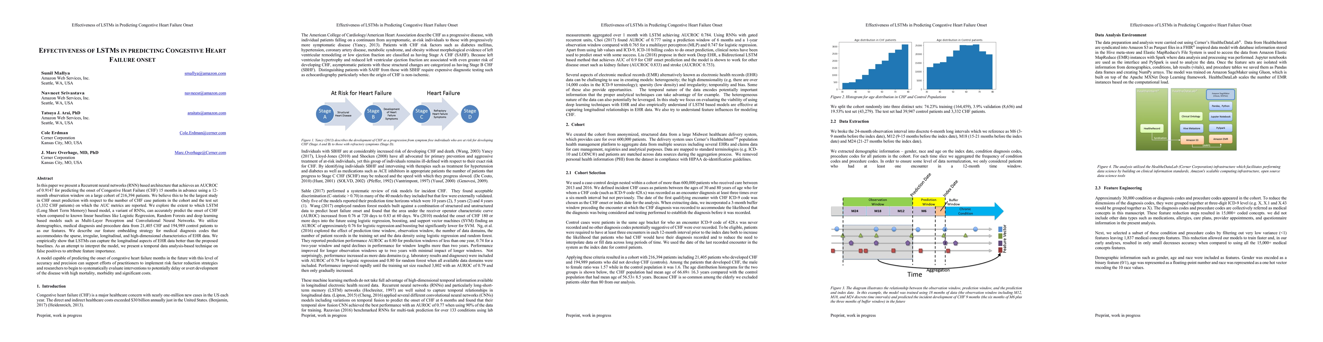 This study employs LSTMs within a RNN architecture to predict Congestive Heart Failure onset with an AUCROC of 0.9147, outperforming linear and other deep learning baselines. The model's success in capturing longitudinal EHR data highlights its potential to inform preventative strategies and intervention evaluations.