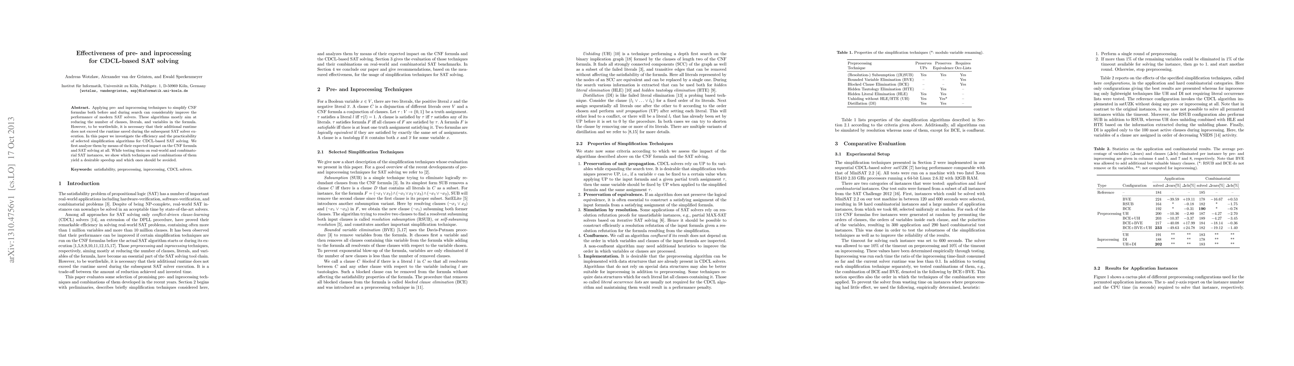 This paper examines the effectiveness of pre- and inprocessing techniques for simplifying CNF formulas in CDCL-based SAT solvers, aiming to improve performance without exceeding the runtime saved during SAT solving. The study identifies optimal techniques and combinations that yield significant speedups.