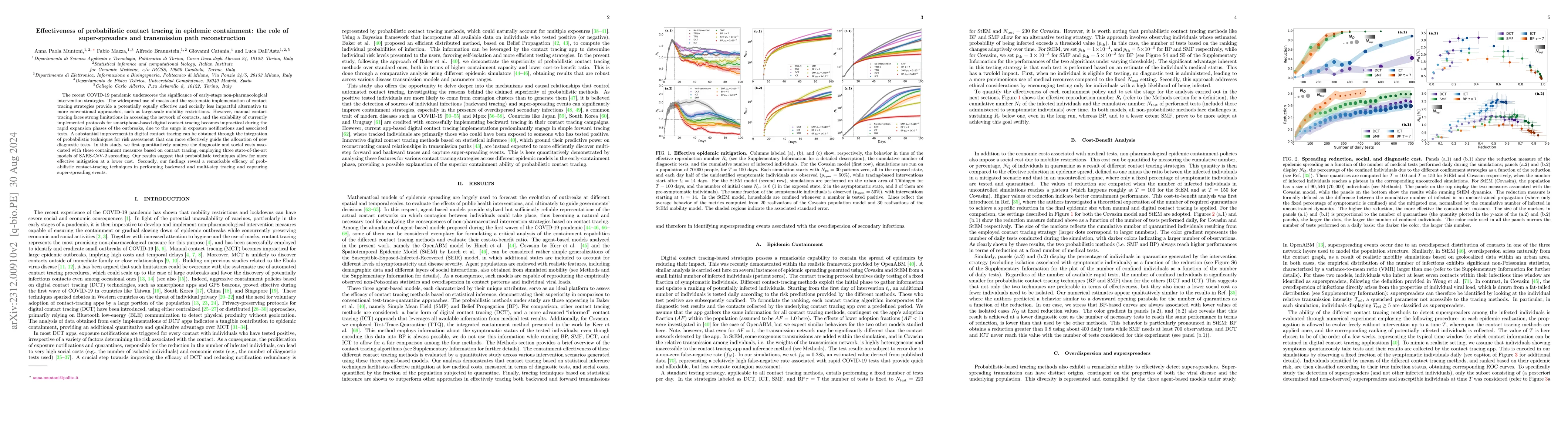 This study evaluates the effectiveness of probabilistic contact tracing in epidemic containment, highlighting its advantages over traditional methods in managing the COVID-19 pandemic. The research demonstrates that probabilistic techniques can significantly reduce diagnostic and social costs while effectively identifying super-spreaders and transmission paths.