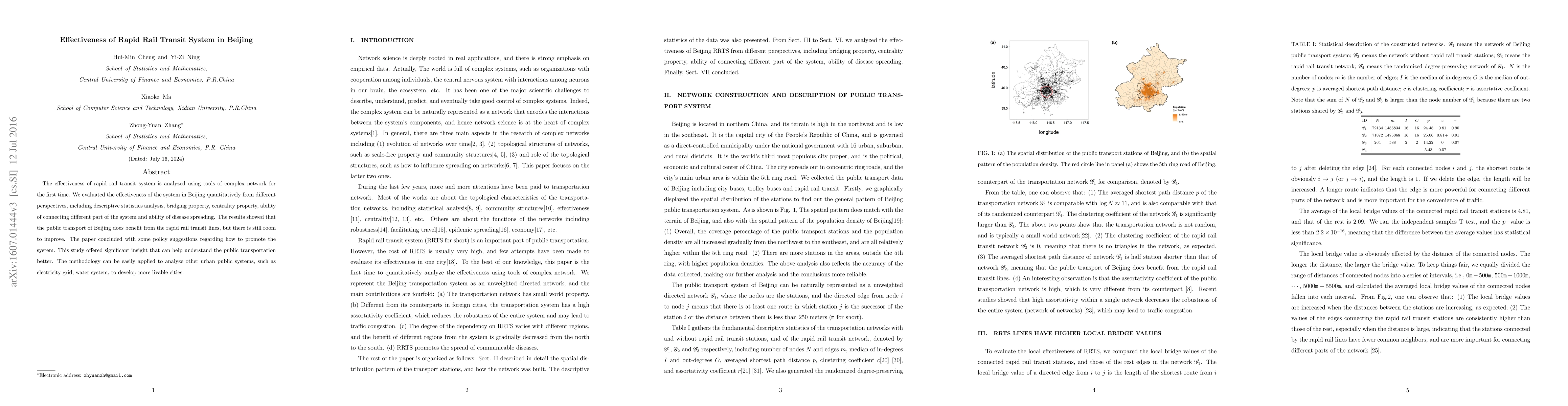 The effectiveness of rapid rail transit system is analyzed using tools of complex network for the first time. We evaluated the effectiveness of the system in Beijing quantitatively from different perspectives, including descriptive statistics analysis, bridging property, centrality property, ability of connecting different part of the system and ability of disease spreading. The results showed that the public transport of Beijing does benefit from the rapid rail transit lines, but there is still room to improve. The paper concluded with some policy suggestions regarding how to promote the system. This study offered significant insight that can help understand the public transportation better. The methodology can be easily applied to analyze other urban public systems, such as electricity grid, water system, to develop more livable cities.
