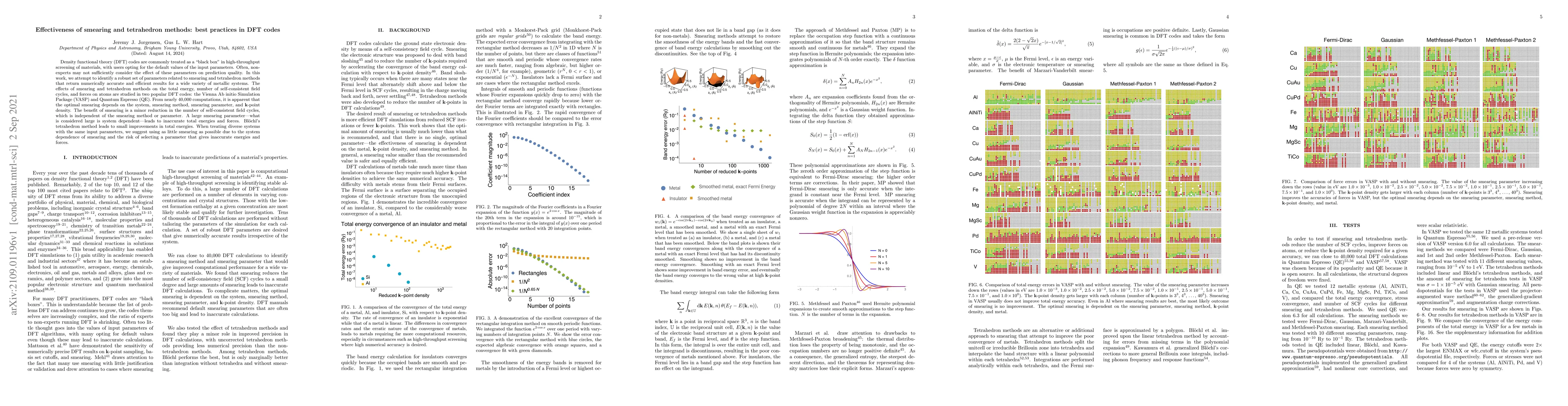 This study investigates the optimal parameters for smearing and tetrahedron methods in DFT codes VASP and QE to achieve accurate and efficient results across various metallic systems. The research concludes that while smearing slightly reduces self-consistent field cycles, large smearing parameters can lead to inaccuracies, and the best practice is to use minimal smearing when treating diverse systems.