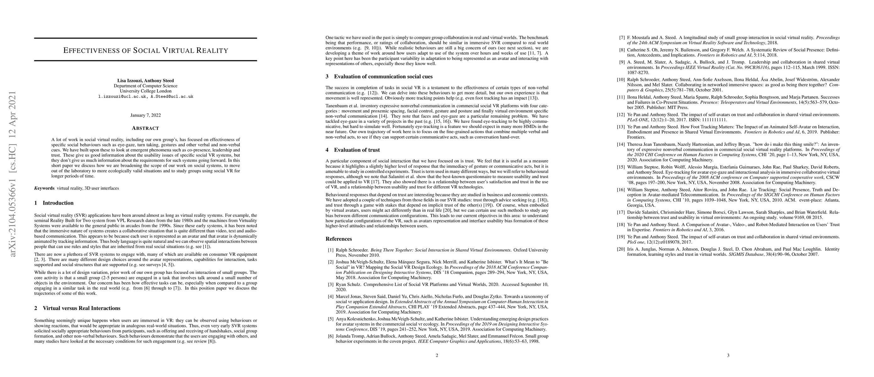 A lot of work in social virtual reality, including our own group's, has focused on effectiveness of specific social behaviours such as eye-gaze, turn taking, gestures and other verbal and non-verbal cues. We have built upon these to look at emergent phenomena such as co-presence, leadership and trust. These give us good information about the usability issues of specific social VR systems, but they don't give us much information about the requirements for such systems going forward. In this short paper we discuss how we are broadening the scope of our work on social systems, to move out of the laboratory to more ecologically valid situations and to study groups using social VR for longer periods of time.