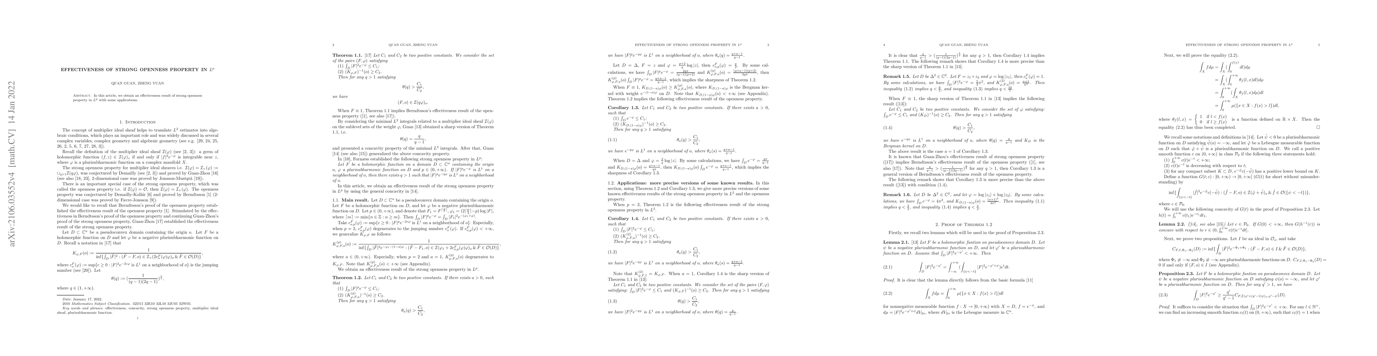 Summary: This paper demonstrates an effective result regarding the strong openness property in $L^p$ spaces and explores its applications, highlighting the practical implications of this mathematical property.