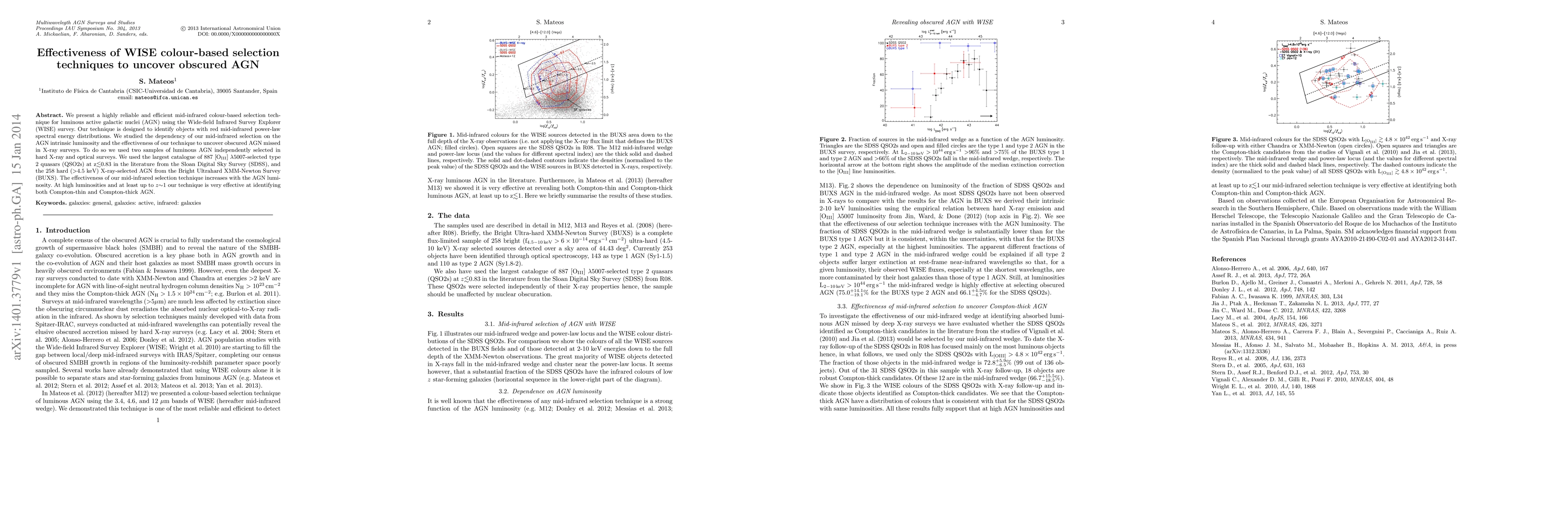 The paper presents a reliable and efficient mid-infrared colour-based selection technique for luminous AGN using WISE survey data, which can identify obscured AGN missed by X-ray surveys.