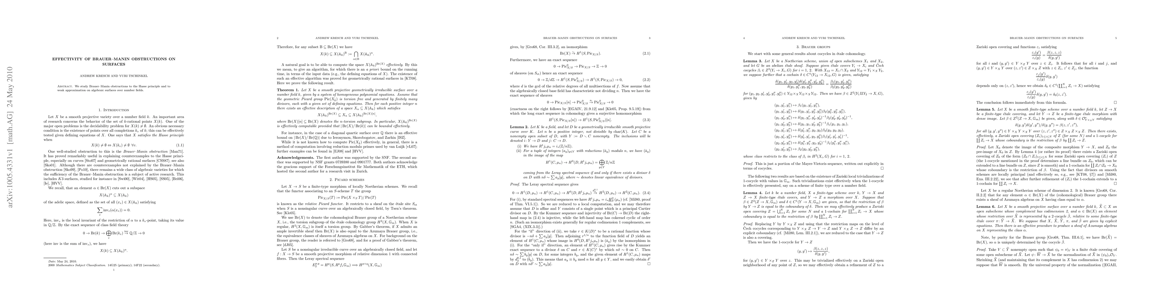 Summary: This paper investigates how Brauer-Manin obstructions impact the Hasse principle and weak approximation on algebraic surfaces over number fields, providing insights into their effectiveness.