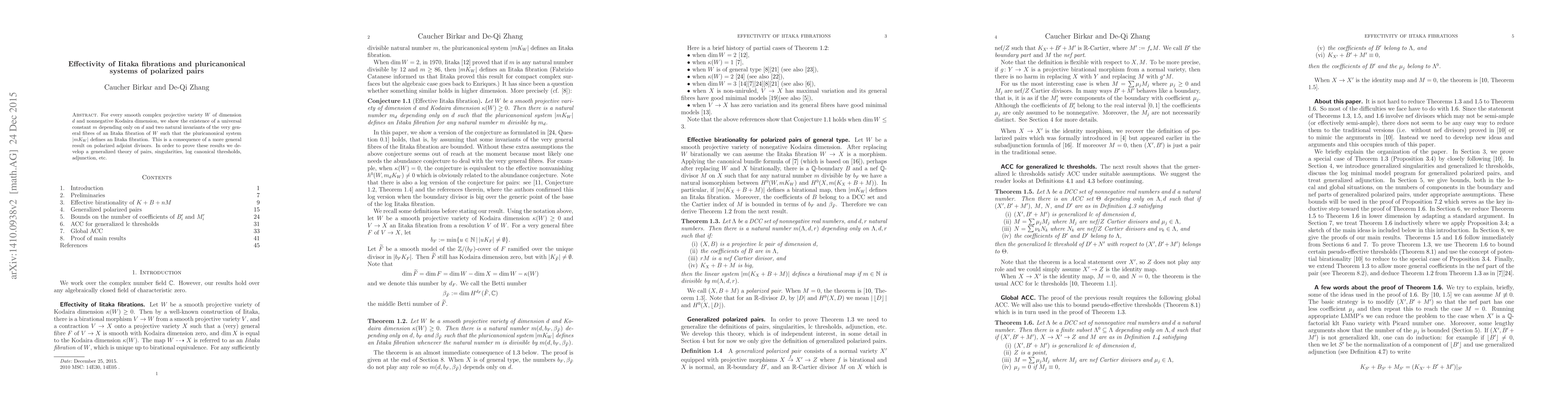 This paper establishes the existence of a universal constant $m$ for smooth complex projective varieties $W$ that determines the effectiveness of pluricanonical systems, defining an Iitaka fibration. The results are derived from a generalized theory of polarized pairs and their singularities.