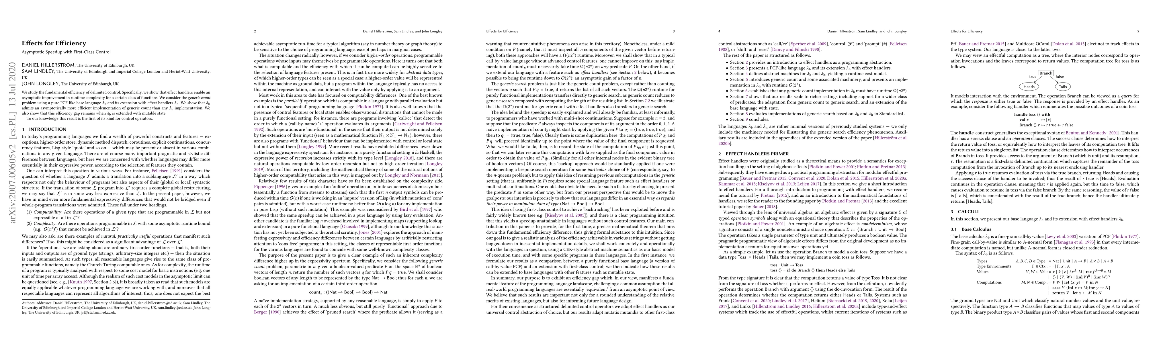 This paper shows that using effect handlers in programming can lead to asymptotic speedup in runtime complexity for certain functions, particularly in solving the generic count problem.