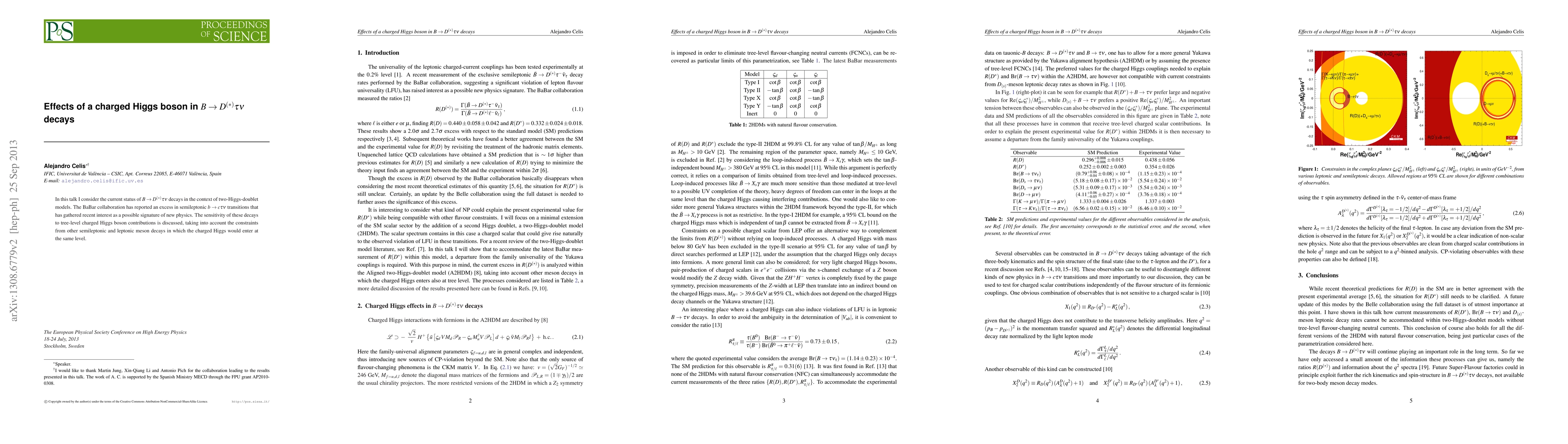 In this talk I consider the current status of $B \rightarrow D^{(*)} \tau \nu$ decays in the context of two-Higgs-doublet models. The BaBar collaboration has reported an excess in semileptonic $b \rightarrow c \tau \nu$ transitions that has gathered recent interest as a possible signature of new physics. The sensitivity of these decays to tree-level charged Higgs boson contributions is discussed, taking into account the constraints from other semileptonic and leptonic meson decays in which the charged Higgs would enter at the same level.
