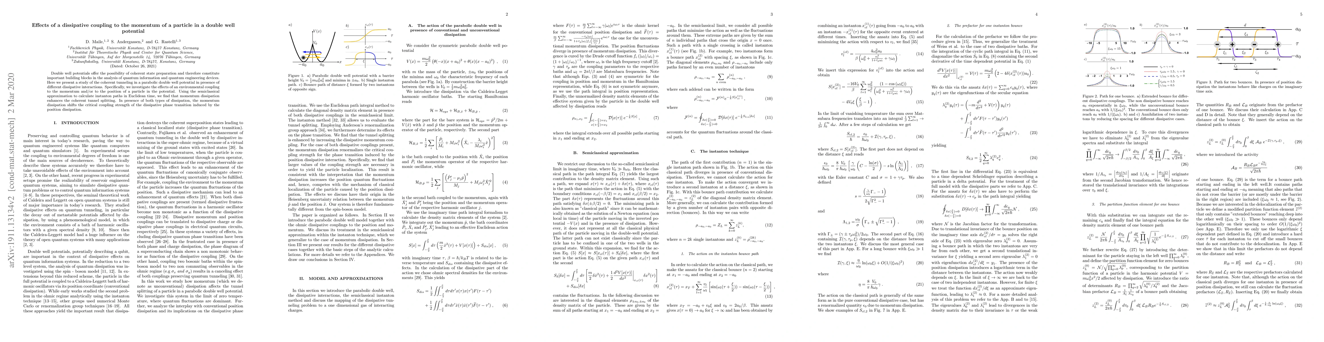 Researchers studied how dissipative interactions affect coherent tunneling in a double well potential, finding that momentum dissipation enhances tunnel splitting and shifts critical coupling strength when combined with position dissipation.
