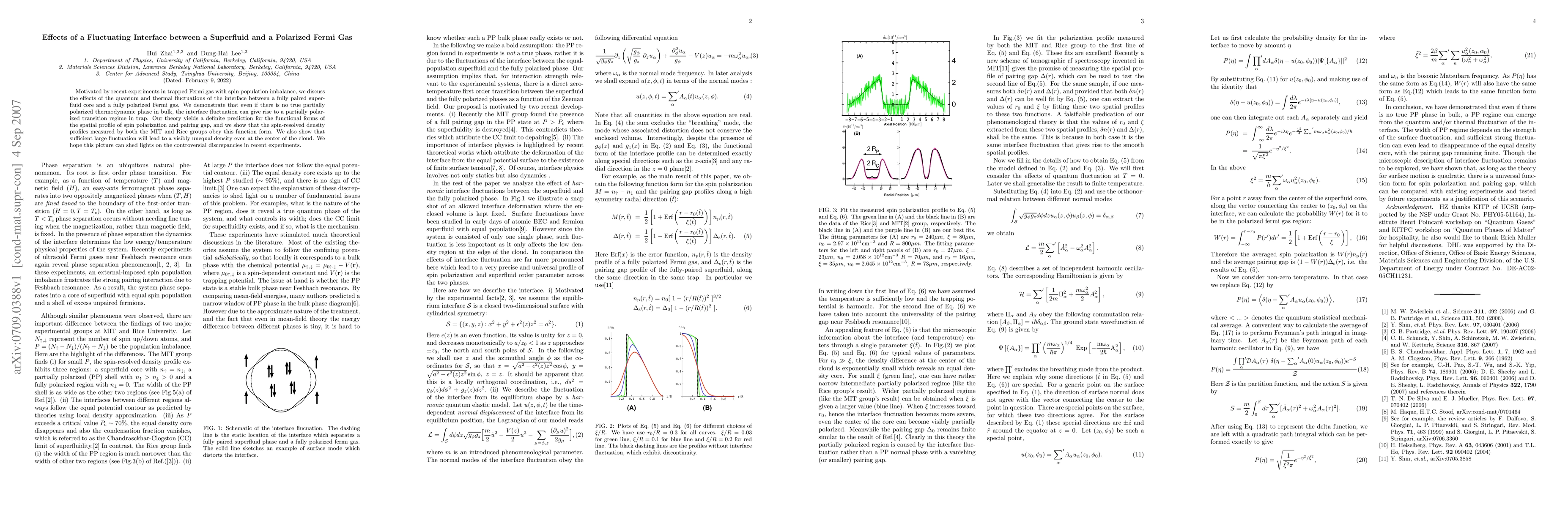 This paper investigates the quantum and thermal fluctuations at the interface between a superfluid core and a polarized Fermi gas, predicting a partially polarized transition regime in the trap. The study provides a theoretical framework for the spatial profiles of spin polarization and pairing gap, which aligns with experimental observations from MIT and Rice groups, and suggests that large fluctuations can cause unequal density even at the center of the cloud.