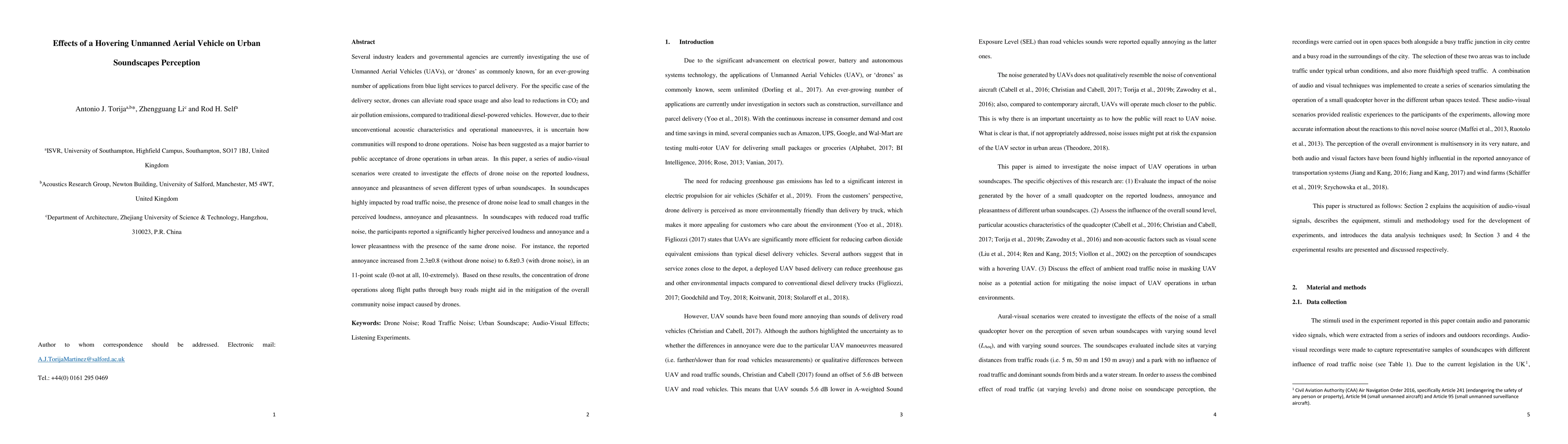 Drones can significantly impact urban soundscapes, causing increased loudness, annoyance, and decreased pleasantness in areas with reduced road traffic noise. Concentrating drone operations along flight paths through busy roads may help mitigate the overall community noise impact.