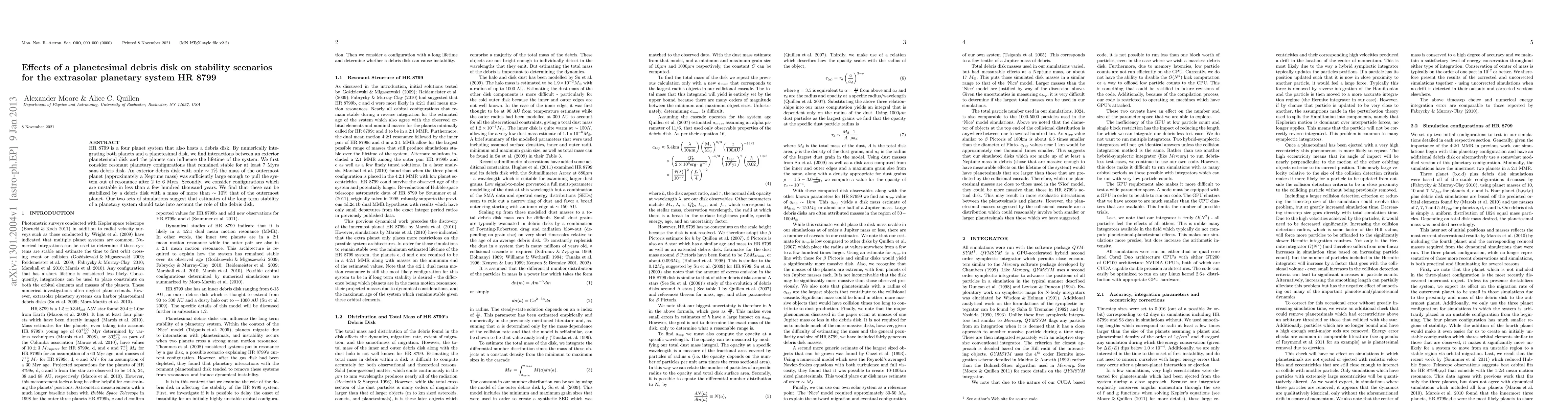 This paper investigates the impact of a planetesimal debris disk on the stability of the HR 8799 extrasolar planetary system, finding that such disks can destabilize resonant configurations or stabilize otherwise unstable systems. The study suggests that debris disk mass significantly influences the long-term stability of planetary systems.
