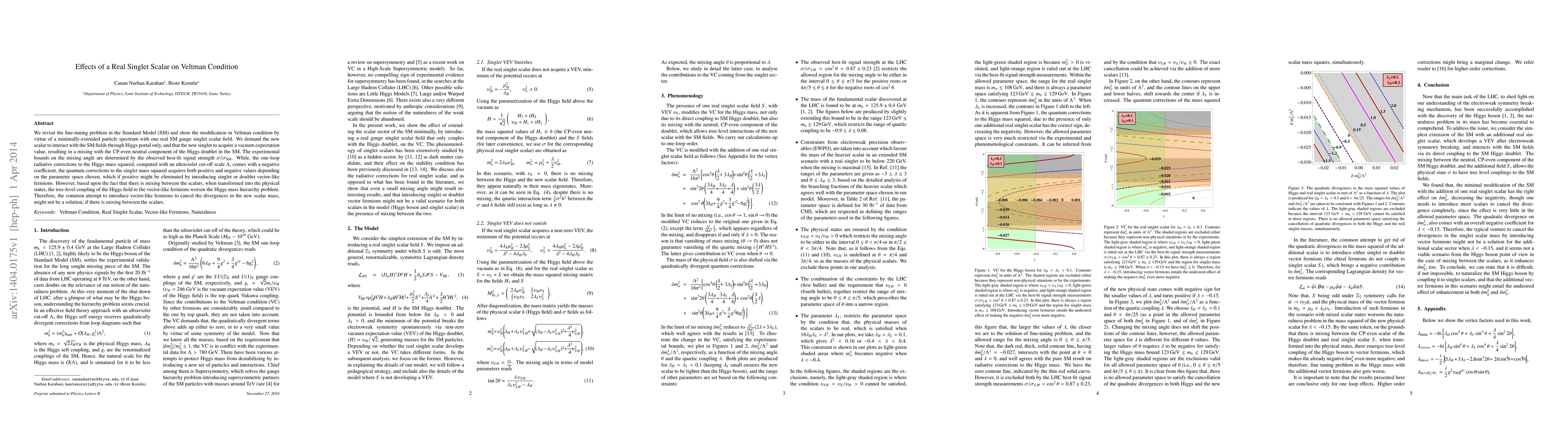 This paper explores the impact of a new real scalar singlet on the Veltman condition in the Standard Model, revealing that while it can soften the Higgs mass hierarchy problem, mixing between scalars might negate benefits from introducing vector-like fermions to cancel divergences in the new scalar's mass.