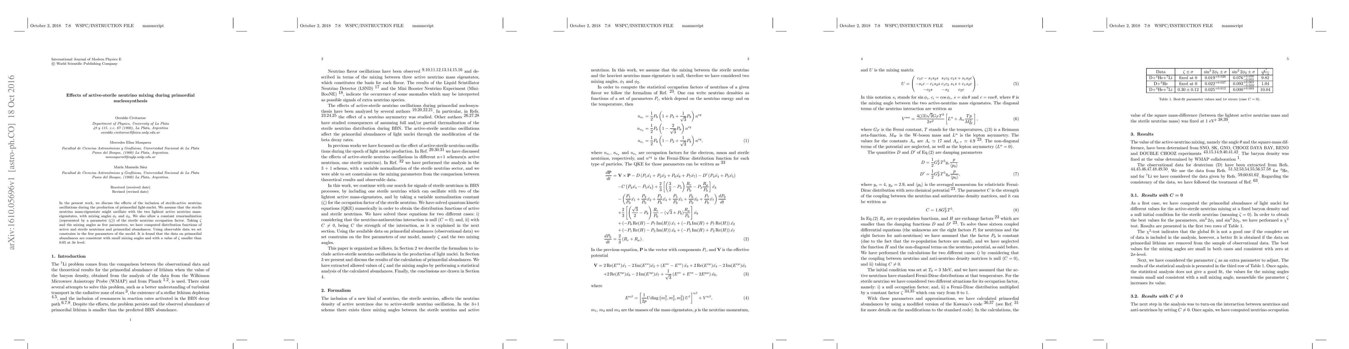This paper investigates the impact of active-sterile neutrino mixing on primordial nucleosynthesis, finding that small mixing angles and a renormalization parameter ${\zeta}$ below 0.65 are consistent with observed primordial abundances, as constrained by current data.