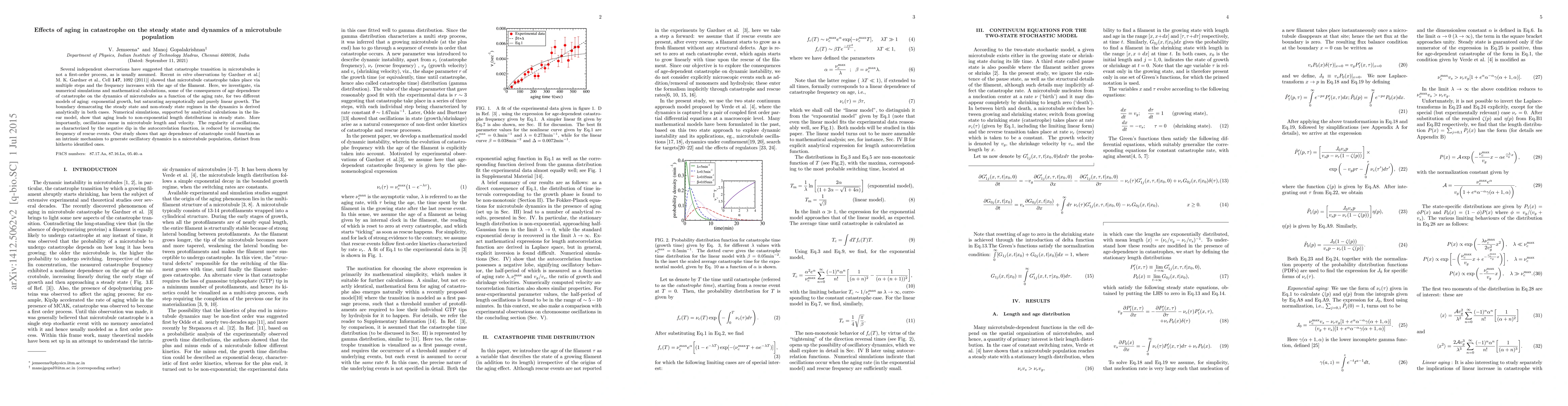 This research investigates the impact of age-dependent catastrophe on microtubule dynamics, revealing that aging leads to non-exponential length distributions and oscillatory behavior in microtubule populations. The study analytically and numerically demonstrates that the frequency of rescue events reduces the regularity of these oscillations.
