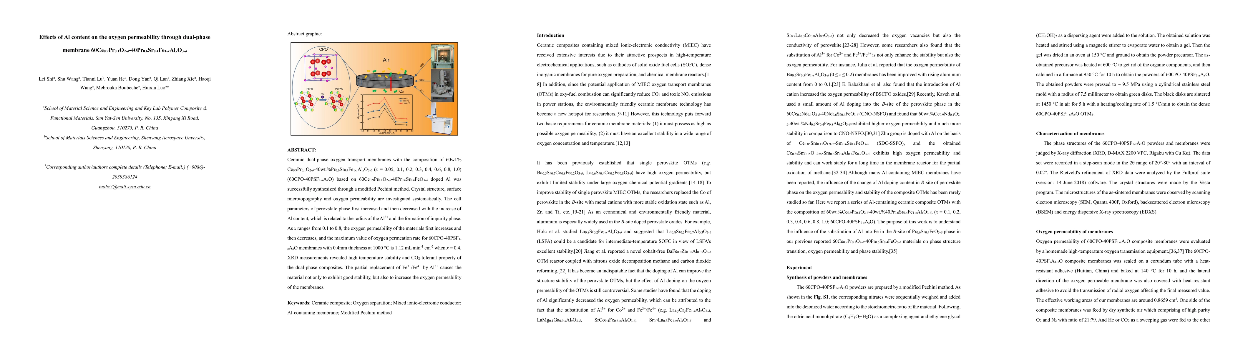 This study investigates the effects of varying Al content on the oxygen permeability of dual-phase ceramic membranes composed of 60Ce$_{0.9}$Pr$_{0.1}$O$_{2-\delta}$ and 40Pr$_{0.6}$Sr$_{0.4}$Fe$_{1-x}$Al$_x$O$_{3-\delta}$. The optimal oxygen permeation rate of 1.12 mL min$^{-1}$ cm$^{-2}$ at 1000°C is achieved when x is 0.4, indicating that partial substitution of Fe by Al enhances oxygen permeability and stability.