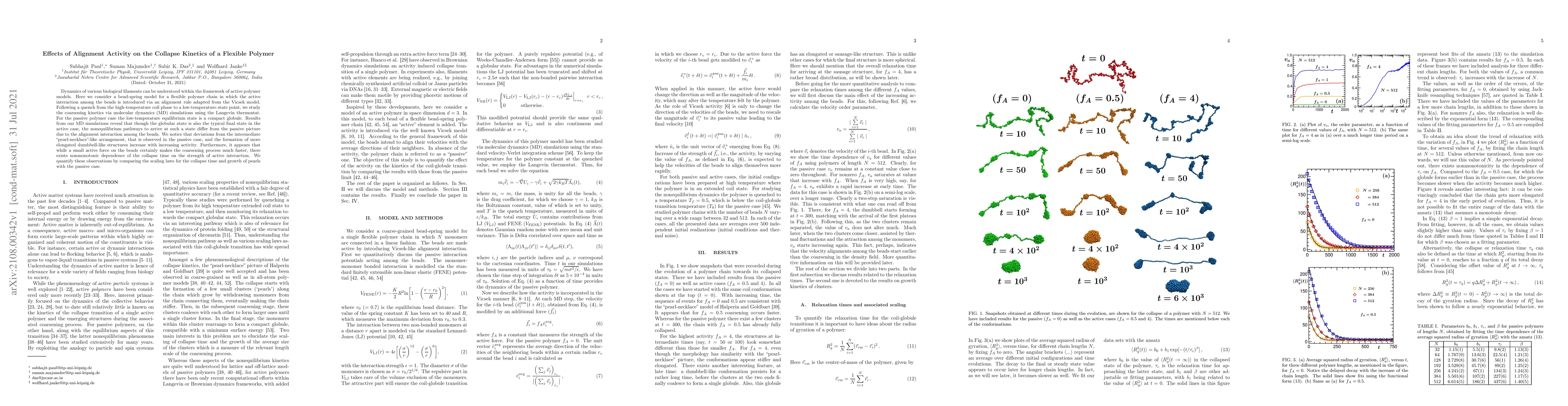 Research shows that adding an alignment rule to a flexible polymer model accelerates its collapse kinetics, but with nonmonotonic results depending on the strength of active interaction; the active case also exhibits different intermediate structures than the passive case.
