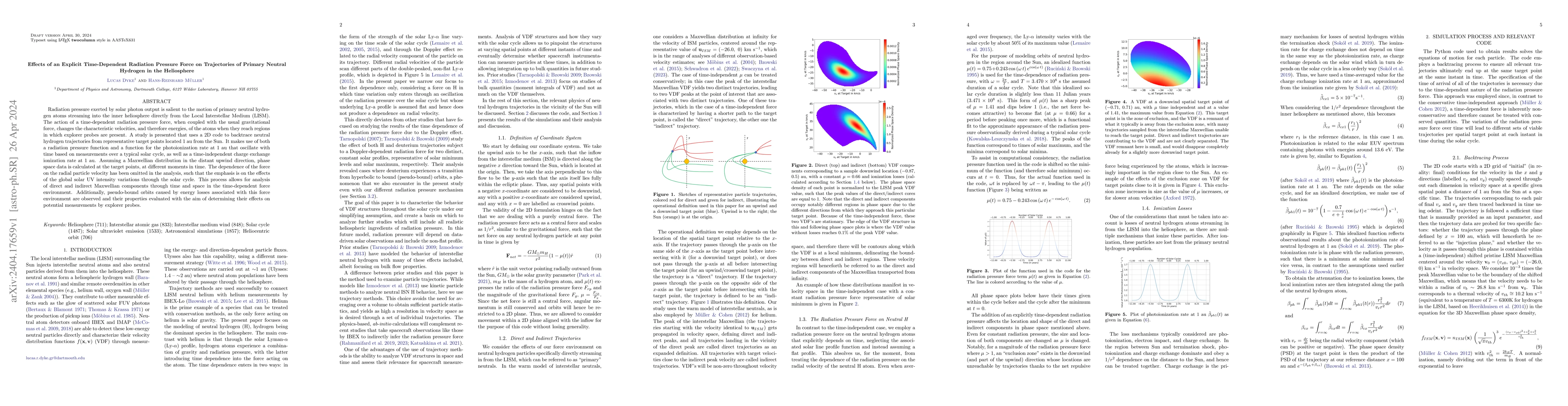 Radiation pressure exerted by solar photon output is salient to the motion of primary neutral hydrogen atoms streaming into the inner heliosphere directly from the Local Interstellar Medium (LISM). The action of a time-dependent radiation pressure force, when coupled with the usual gravitational force, changes the characteristic velocities, and therefore energies, of the atoms when they reach regions in which explorer probes are present. A study is presented that uses a 2D code to backtrace neutral hydrogen trajectories from representative target points located 1 au from the Sun. It makes use of both a radiation pressure function and a function for the photoionization rate at 1 au that oscillate with time based on measurements over a typical solar cycle, as well as a time-independent charge exchange ionization rate at 1 au. Assuming a Maxwellian distribution in the distant upwind direction, phase space data is calculated at the target points, at different moments in time. The dependence of the force on the radial particle velocity has been omitted in the analysis, such that the emphasis is on the effects of the global solar UV intensity variations through the solar cycle. This process allows for analysis of direct and indirect Maxwellian components through time and space in the time-dependent force environment. Additionally, pseudo-bound orbits caused by energy losses associated with this force environment are observed and their properties evaluated with the aim of determining their effects on potential measurements by explorer probes.
