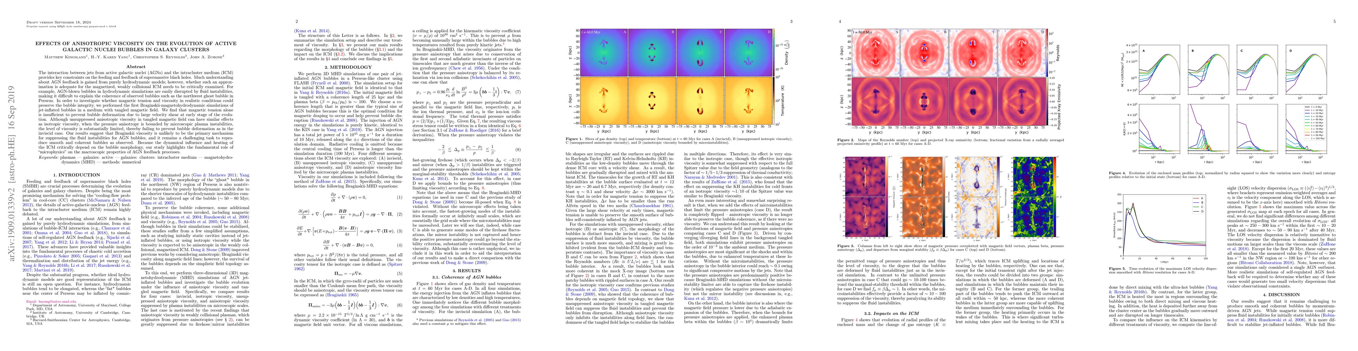 This paper investigates the role of anisotropic viscosity in AGN-blown bubbles within galaxy clusters using Braginskii-magnetohydrodynamic simulations. It finds that while magnetic tension and viscosity can influence bubble stability, they are insufficient to prevent deformation, suggesting that other mechanisms are needed to explain the observed coherence of AGN bubbles.