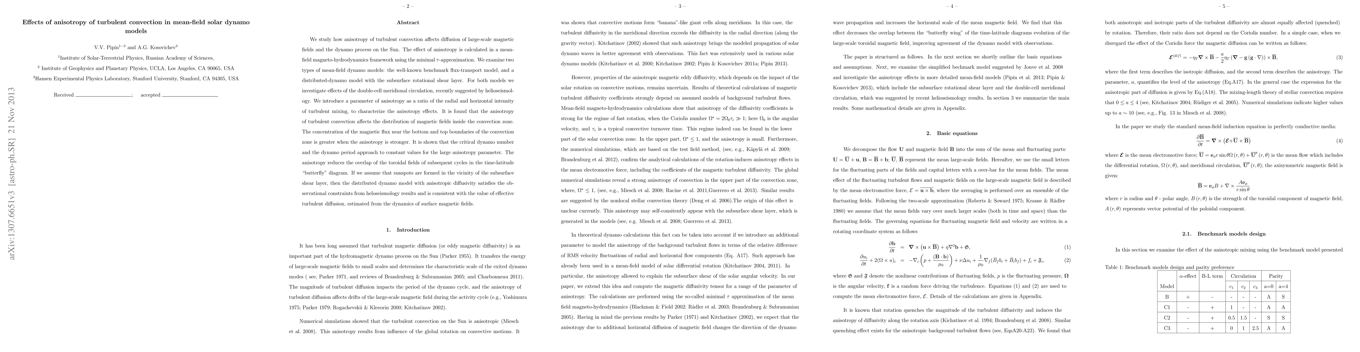 This study investigates the impact of anisotropic turbulent convection on the diffusion of large-scale magnetic fields and the solar dynamo process using mean-field magneto-hydrodynamics. It finds that stronger anisotropy increases magnetic flux concentration near the convection zone boundaries and stabilizes the dynamo period, while reducing overlap between toroidal fields in subsequent cycles.