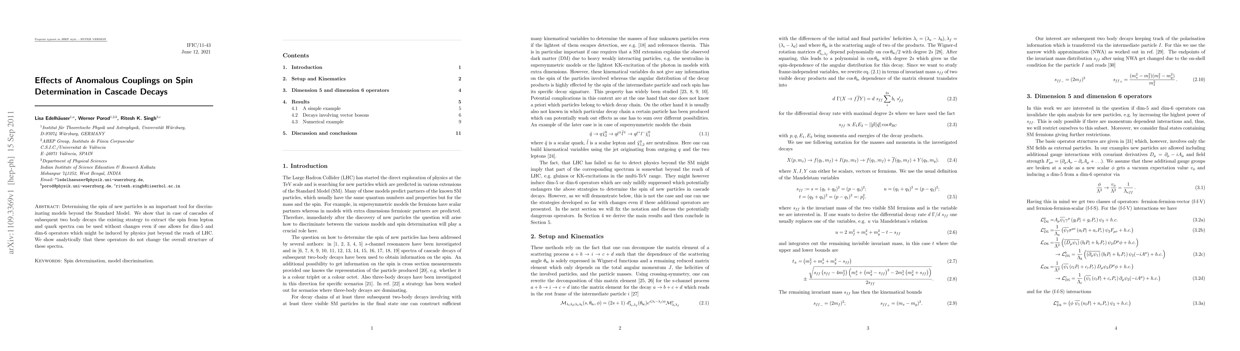 Determining the spin of new particles is an important tool for discriminating models beyond the Standard Model. We show that in case of cascades of subsequent two body decays the existing strategy to extract the spin from lepton and quark spectra can be used without changes even if one allows for dim-5 and dim-6 operators which might be induced by physics just beyond the reach of LHC. We show analytically that these operators do not change the overall structure of these spectra.