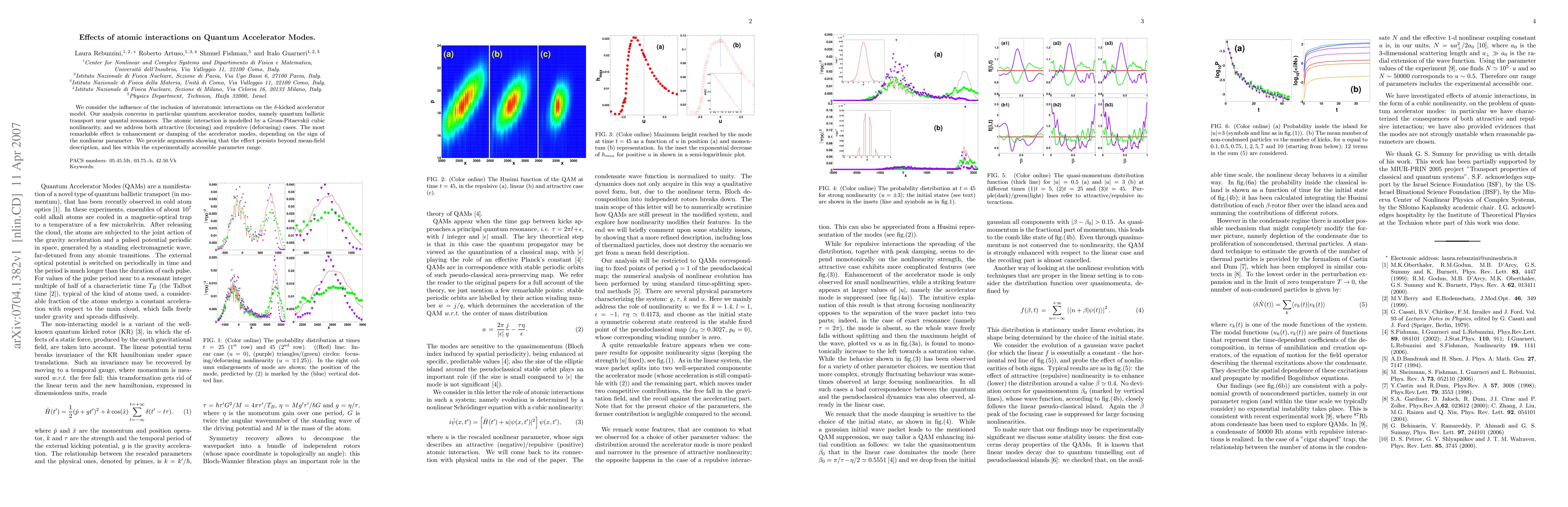 We consider the influence of the inclusion of interatomic interactions on the delta-kicked accelerator model. Our analysis concerns in particular quantum accelerator modes, namely quantum ballistic transport near quantal resonances. The atomic interaction is modelled by a Gross-Pitaevskii cubic nonlinearity, and we address both attractive (focusing) and repulsive (defocusing) cases. The most remarkable effect is enhancement or damping of the accelerator modes, depending on the sign of the nonlinear parameter. We provide arguments showing that the effect persists beyond mean-field description, and lies within the experimentally accessible parameter range.