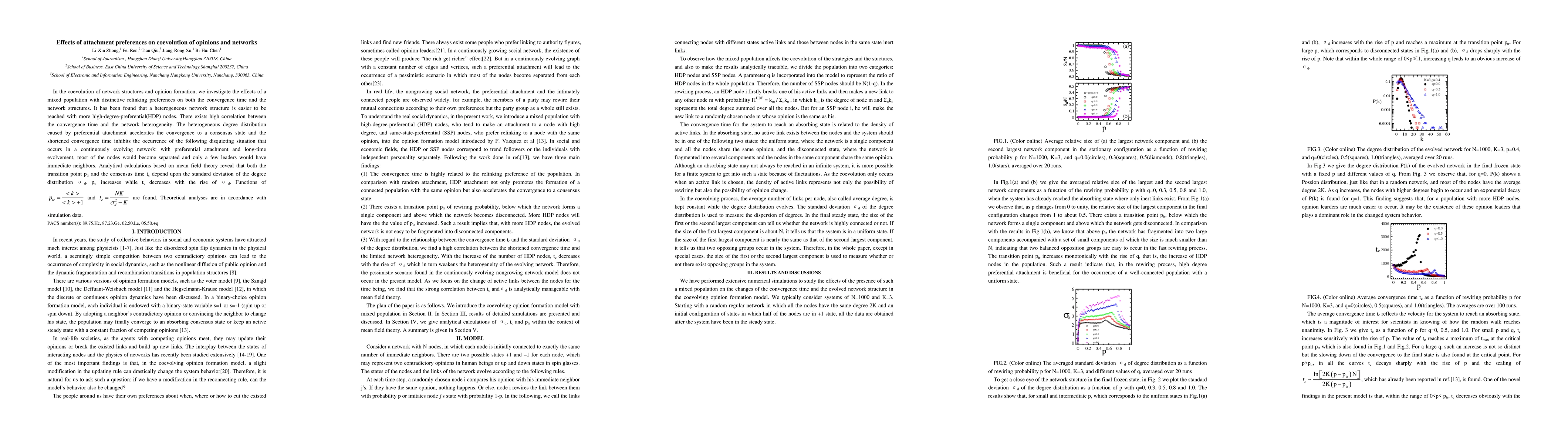 In the coevolution of network structures and opinion formation, we investigate the effects of a mixed population with distinctive relinking preferences on both the convergence time and the network structures. It has been found that a heterogeneous network structure is easier to be reached with more high-degree-preferential(HDP) nodes. There exists high correlation between the convergence time and the network heterogeneity. The heterogeneous degree distribution caused by preferential attachment accelerates the convergence to a consensus state and the shortened convergence time inhibits the occurrence of the following disquieting situation that occurs in a continuously evolving network: with preferential attachment and long-time evolvement, most of the nodes would become separated and only a few leaders would have immediate neighbors. Analytical calculations based on mean field theory reveal that both the transition point ptr and the consensus time tc depend upon the standard deviation of the degree distribution.ptr increases while tc decreases with the rise of it.Functions of ptr and tc are found.Theoretical analyses are in accordance with simulation data.