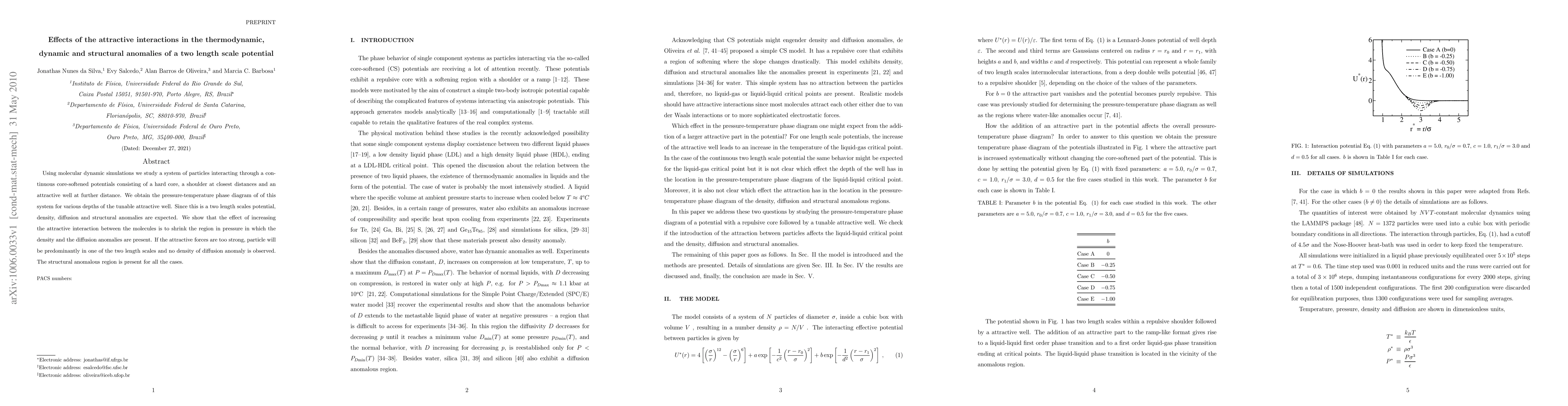 This study investigates the thermodynamic and dynamic behavior of particles interacting via a two-length scale potential using molecular dynamics simulations. Increasing attractive interactions reduce the pressure range where density and diffusion anomalies occur, while structural anomalies persist regardless of the attractive force strength.