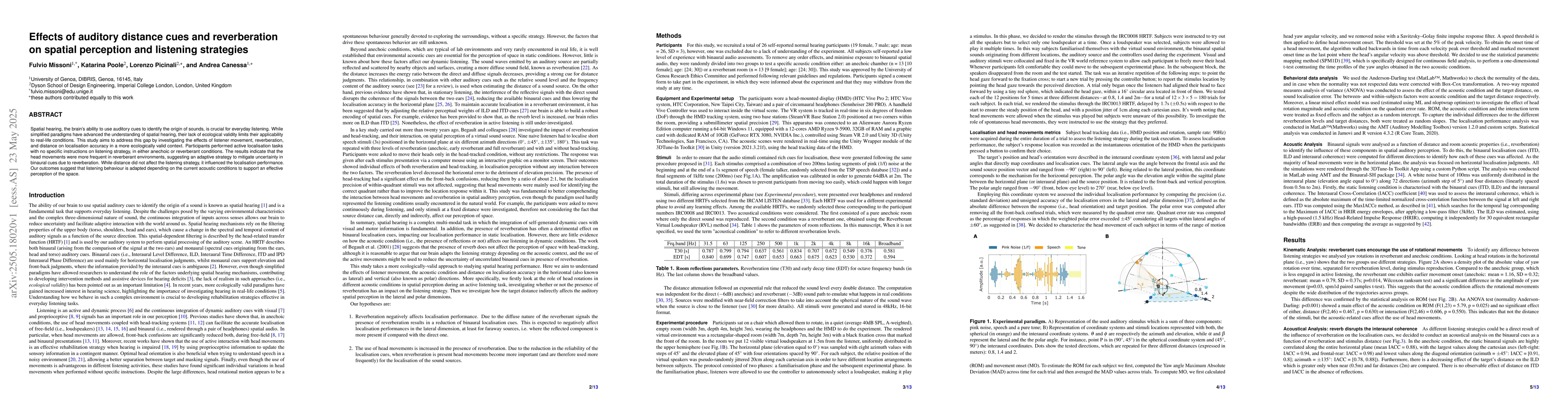 Demonstrates the adaptive nature of human listening behavior in response to reverberation and distance cues.