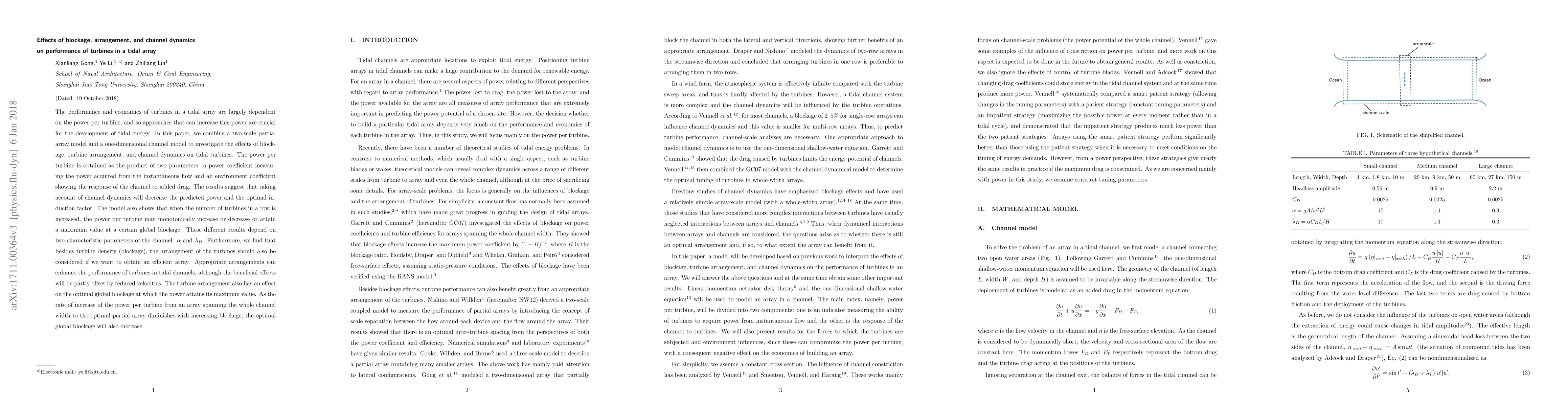 The study investigates how blockage, turbine arrangement, and channel dynamics affect tidal turbine performance, finding that optimizing these factors can increase power output and reduce optimal global blockages.