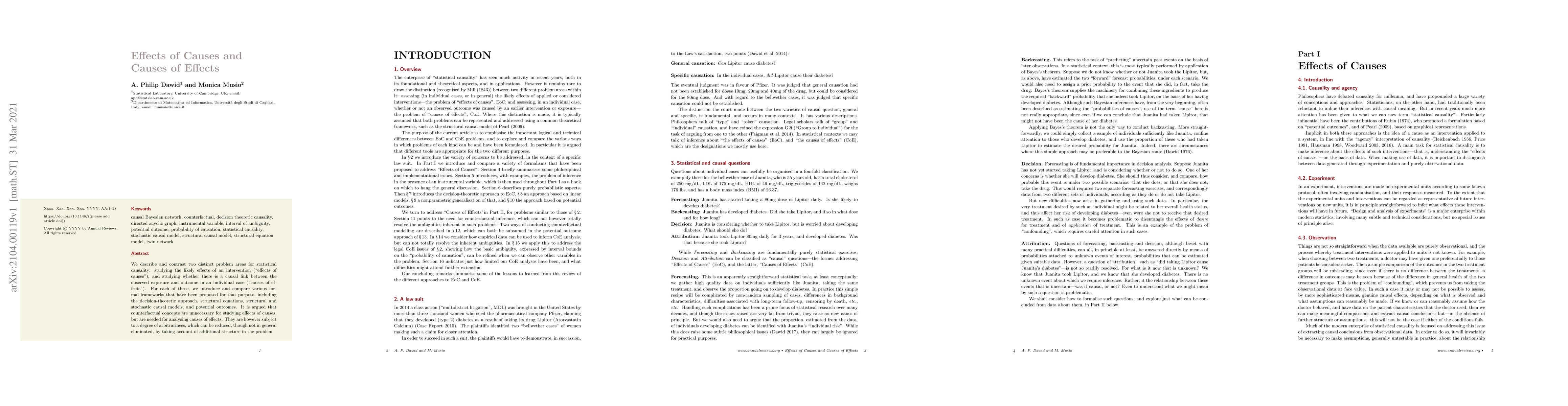 This paper contrasts two areas of statistical causality: "effects of causes" and "causes of effects," comparing various formal frameworks like decision theory, structural equations, and potential outcomes. It argues that while counterfactuals are unnecessary for the former, they are essential for the latter but are subject to arbitrariness, which can be mitigated by incorporating additional problem structure.