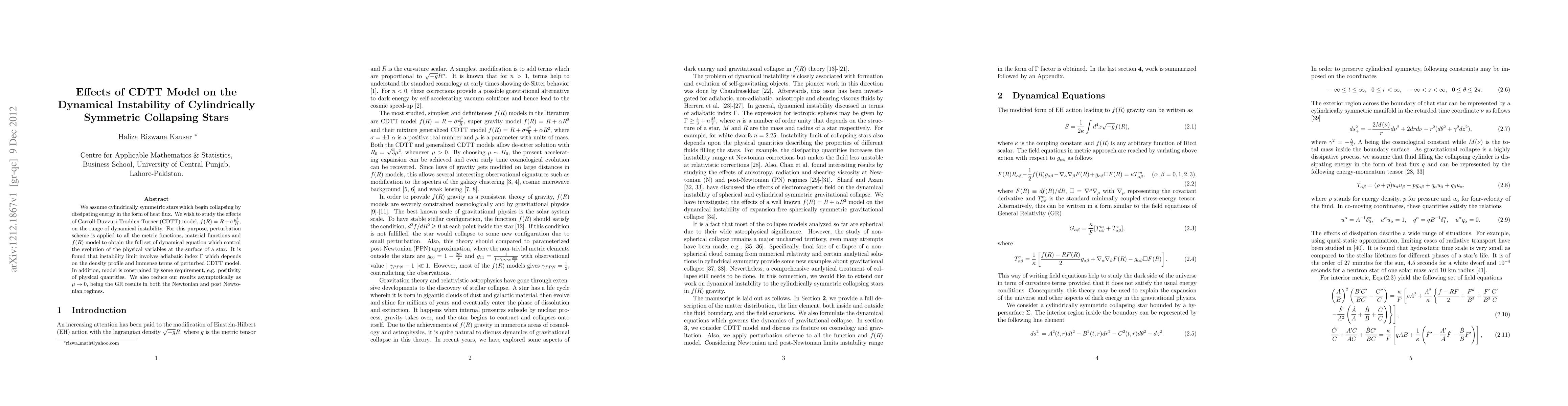This paper investigates the impact of the CDTT model on the dynamical instability of cylindrically symmetric collapsing stars, revealing that the instability limit is influenced by the adiabatic index $\Gamma$ and the perturbed CDTT model, with results converging to GR as $\mu$ approaches zero.