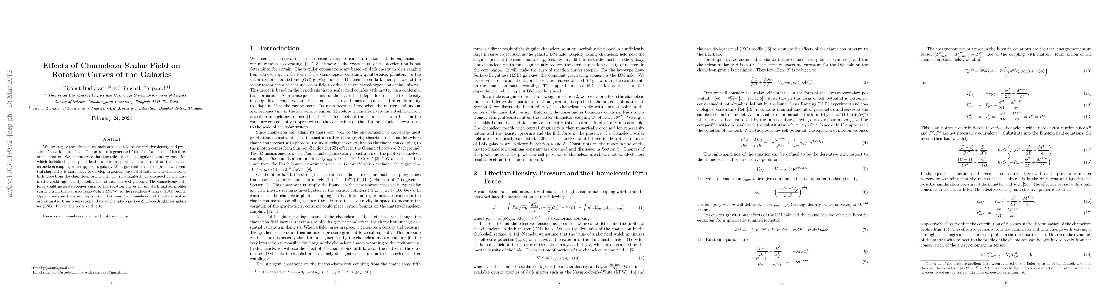 We investigate the effects of chameleon scalar field to the effective density and pressure of a dark matter halo. The pressure is generated from the chameleonic fifth force on the matter. We demonstrate that the thick-shell non-singular boundary condition which forbids singular point leads to extremely stringent constraint on the matter-chameleon coupling when applied to galaxy. We argue that chameleon profile with central singularity is more likely to develop in general physical situation. The chameleonic fifth force from the chameleon profile with central singularity experienced by the dark matter could significantly modify the rotation curve of galaxies. The chameleonic fifth force could generate steeper cusp to the rotation curves in any dark matter profiles starting from the Navarro-Frenk-White (NFW) to the pseudo-isothermal (ISO) profile. Upper limits on the coupling constant between the chameleon and the dark matter are estimated from observational data of the late-type Low-Surface-Brightness galaxies (LSB). It is in the order of $\beta < 10^{-3}$.