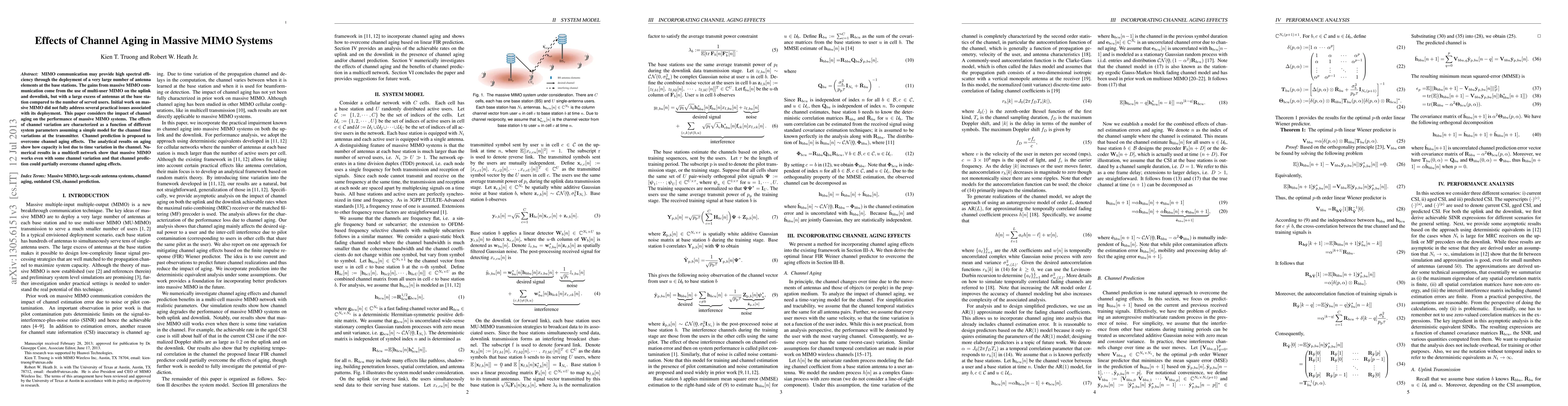 This paper examines the impact of channel aging on massive MIMO systems, demonstrating capacity loss due to time-varying channels. It proposes channel prediction as a method to mitigate these effects, showing through analytical and numerical results that massive MIMO can still perform effectively despite some channel variation.