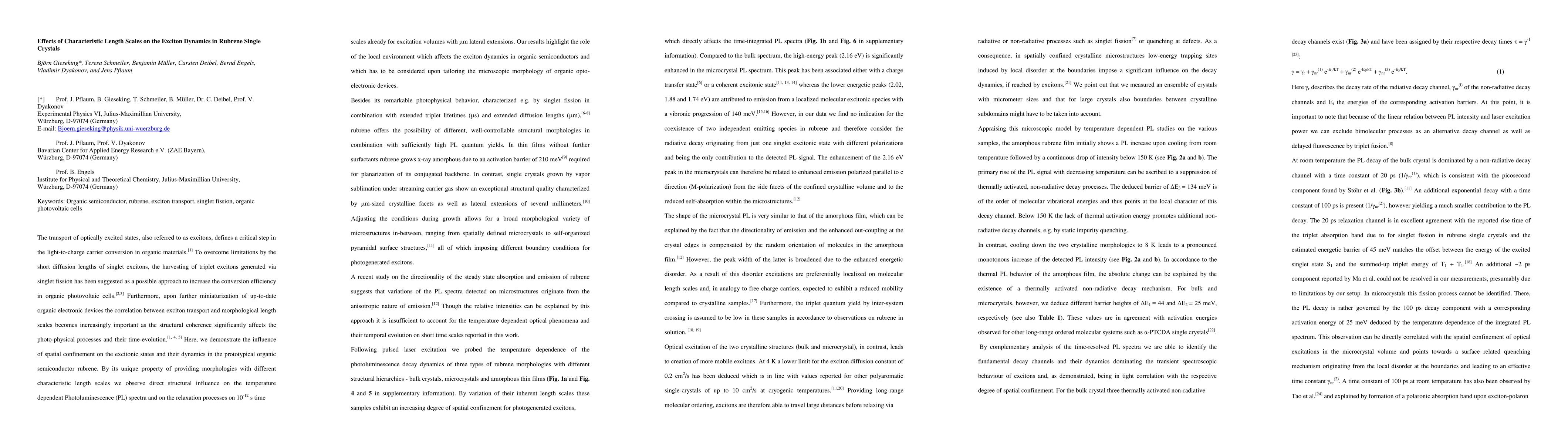 As for its inorganic counterparts the future developments in organic electronics are driven by an advanced device miniaturization. Therefore, the opto-electronic behavior of up-to-date devices is progressively governed by the local structural environment. However, there is a lack of organic semiconductor materials providing access to the fundamental structure-functionality relation, either due to limitations by their inherent growth or their optical characteristics. In this work we present a systematic investigation of the optical states, so-called excitons, and their temporal evolution in the prototypical organic semiconductor rubrene by means of time and temperature dependent photoluminescence studies. This material offers the unique possibility of preparing well-defined morphologies with adjustable degree of confinement. By this approach we are able to confirm the direct influence on the temperature dependent optical processes with picosecond resolution already for a spatial localization of excitation on the \mu m length scale. While in bulk single crystals the exciton decay dynamics are governed by thermally activated singlet fission, excitons created in microcrystals are trapped by dark states localized on the surface and leading to a pronounced enhancement of their average lifetime. Our results highlight the impact of the local environment on the excitonic states and their dynamics in organic semiconductors. With respect to the spatial dimensions of organic thin film devices, this correlation and the reported effects emerging by the confinement have to be considered upon further miniaturization and in the development of innovative device concepts, such as photovoltaic cells based on triplet-harvesting.
