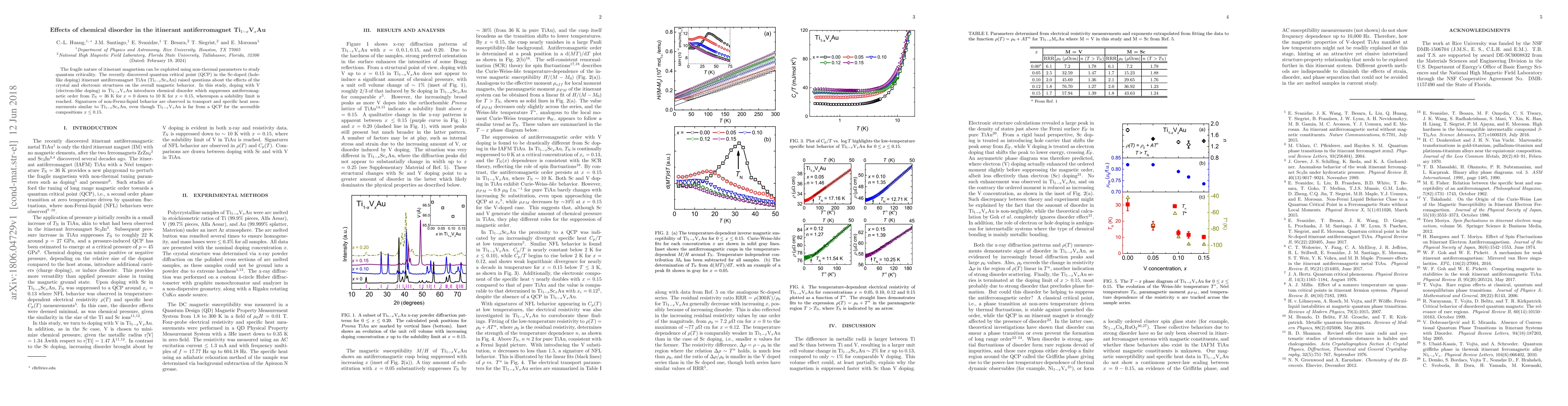 Doping TiAu with vanadium suppresses antiferromagnetic order in a temperature-dependent manner, exhibiting non-Fermi-liquid behavior similar to Sc-doped TiAu.