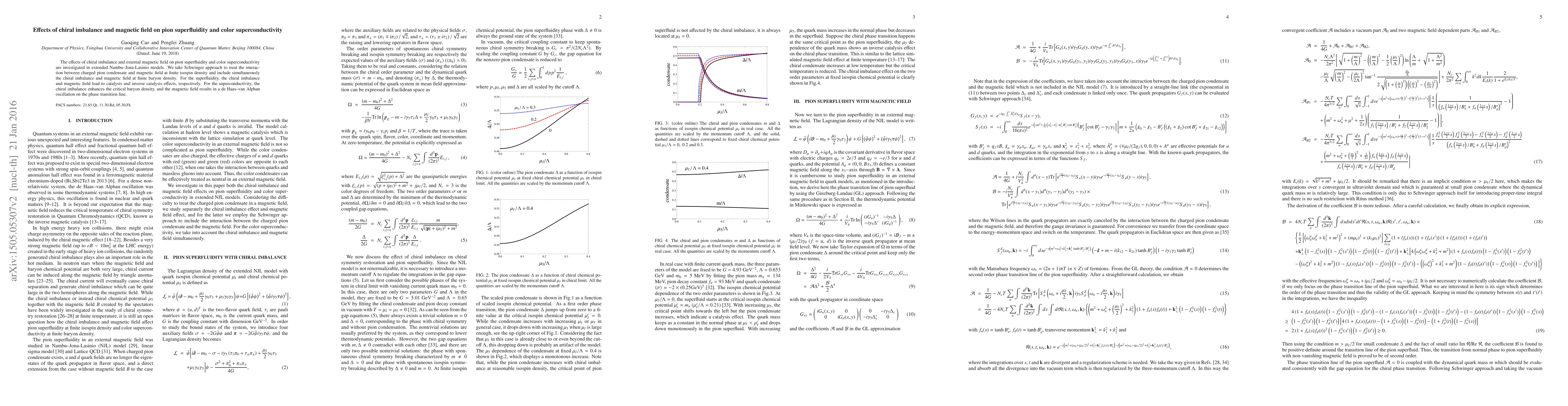 This paper investigates how chiral imbalance and magnetic fields influence pion superfluidity and color superconductivity using extended Nambu--Jona-Lasinio models. It finds that chiral imbalance catalyzes superfluidity, while magnetic fields induce inverse catalysis, and enhances critical baryon density for superconductivity, with magnetic fields also causing de Haas--van Alphan oscillations.