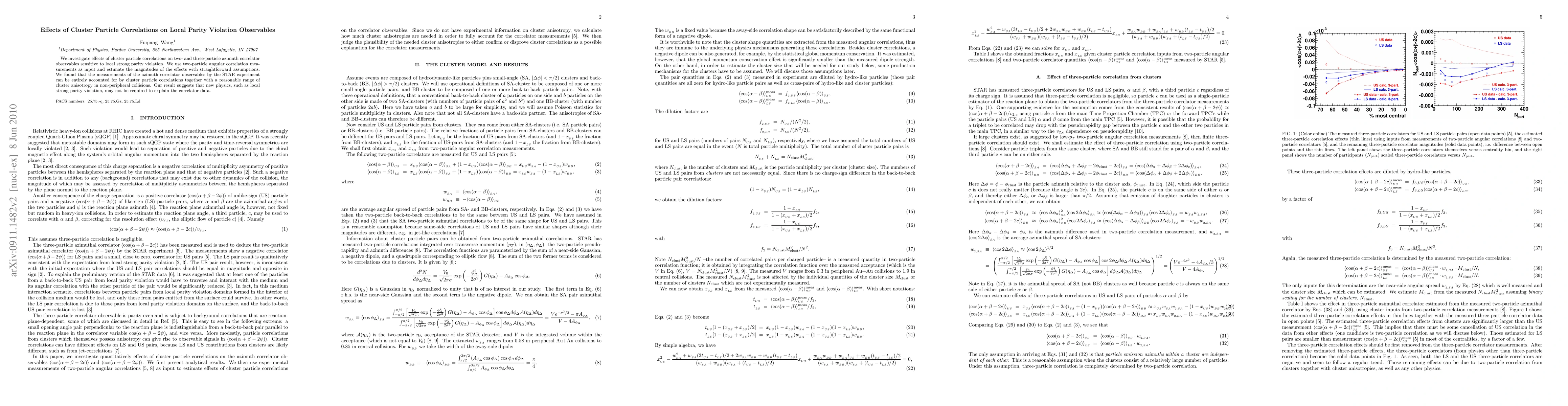This paper examines how cluster particle correlations influence two- and three-particle azimuth correlator observables linked to local strong parity violation, finding that the STAR experiment's data can be fully explained by these correlations and cluster anisotropy, suggesting no need for new physics.