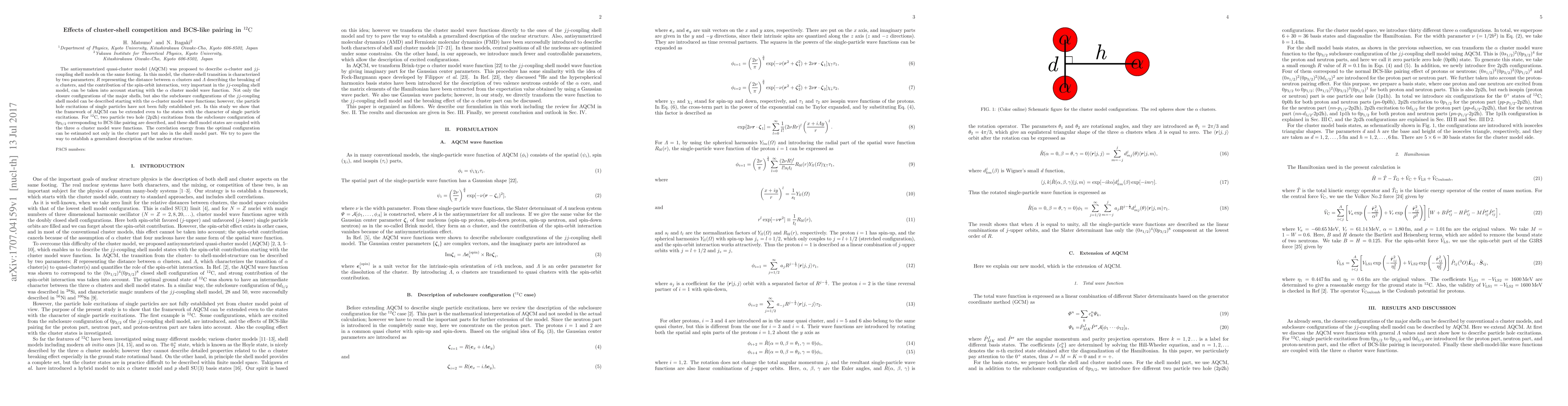 Researchers extend an existing model to describe single-particle excitations in $^{12}$C, finding a connection between BCS-like pairing and the cluster-shell competition, with implications for understanding nuclear structure.