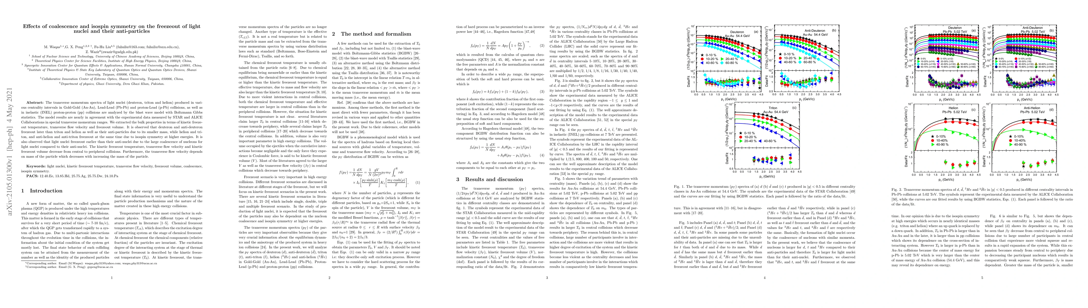 This paper analyzes the transverse momentum spectra of light nuclei and their anti-particles in heavy-ion and proton-proton collisions using a blast wave model. It finds that deuterons freeze out later than tritons and helions due to mass differences, while isospin symmetry governs the simultaneous freezeout of isospin-equivalent particles.