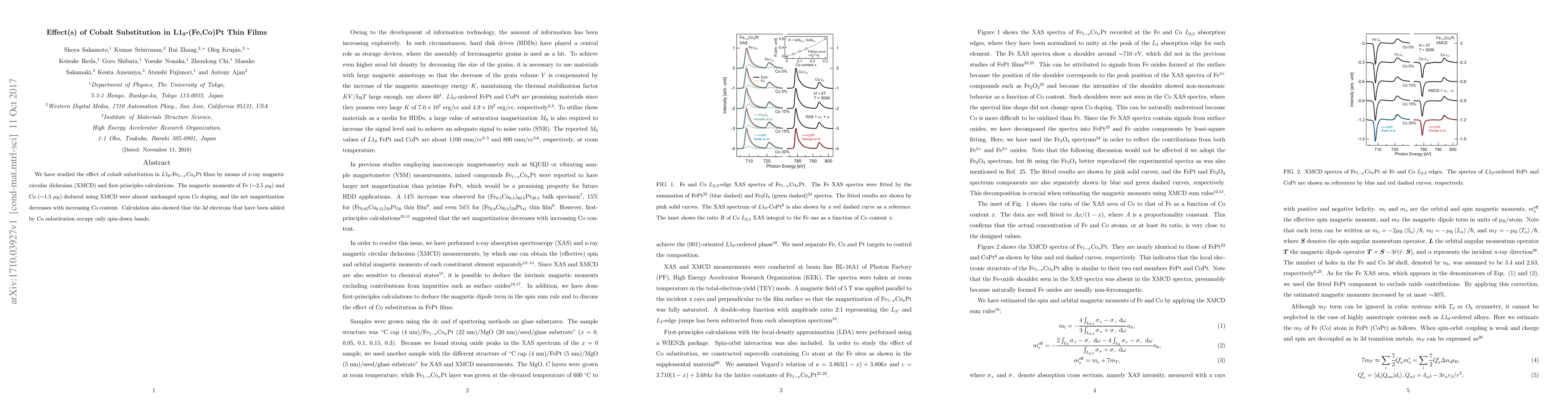 Researchers studied the effect of cobalt substitution in FePt films using XMCD and first-principles calculations, finding that the magnetic moments remained almost unchanged but net magnetization decreased with increasing Co content.